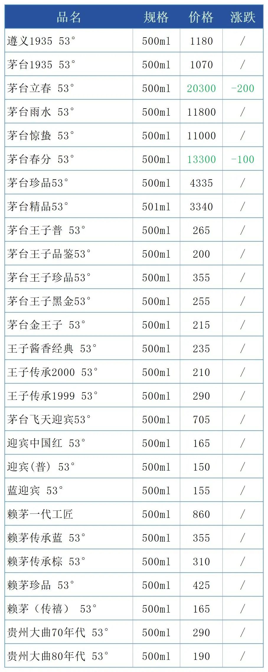 茅台节气酒下跌,每日名酒报价2023年5月27日