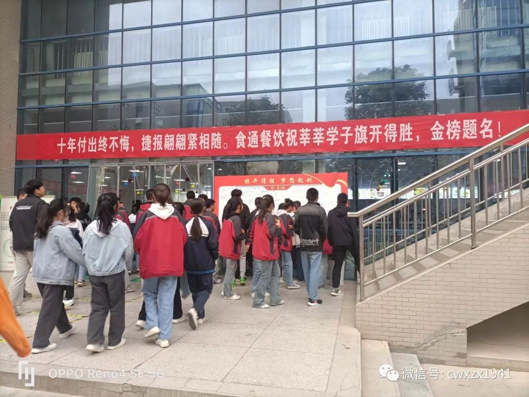为鼓舞高三学子提振备考信心,调整备考状态,西安食通餐饮管理有限公司满怀对莘莘学子的祝福,悬挂励志条幅、定制签名墙,学生纷纷在签名墙上郑重写下目标大学和自己的名字。他们以最真诚的方式祝愿同学们以“行百里者半九十”的清醒认识,“咬定青山不放松”的执着信念,“会当击水三千里”的自信豪情,以梦为马、圆梦六月。