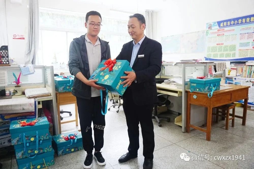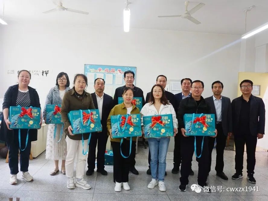项目负责人与学校校长王德锁,党总支副书记尚军,副校长李宏斌、郭婷深入备课组,将饱含真情的慰问品送至高三老师手中,转达了西安食通餐饮管理有限公司全体员工及学校领导的关心和问候,老师们向该公司和校领导表示感谢。