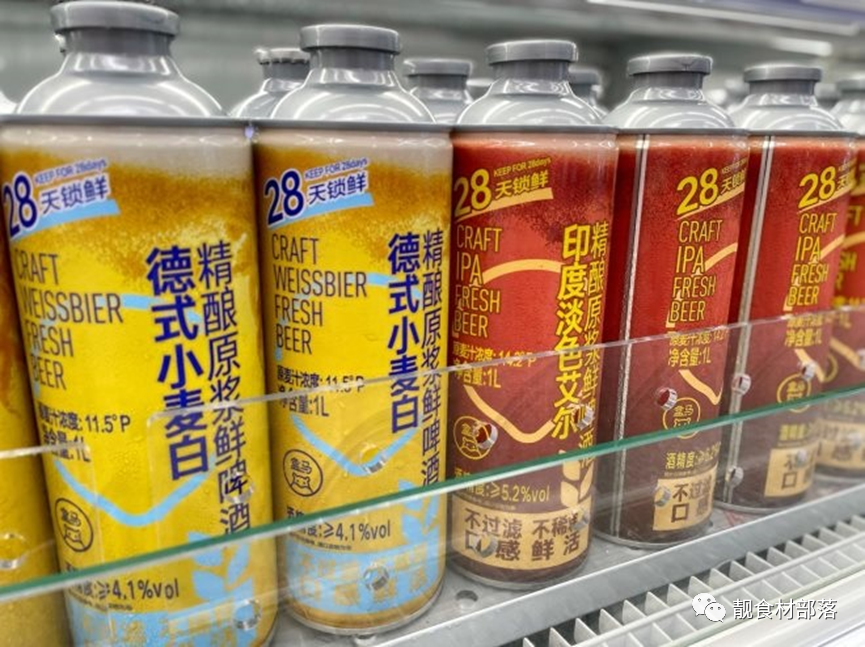 盒马鲜生是阿里巴巴对线下超市完全重构的新零售业态。作为首个主打“餐饮+鲜啤”冷链到家场景的平台,盒马从2018年起切入精酿啤酒的赛道,陆续推出了四款自己研发的常温精酿啤酒:雨橙小麦、淡色艾尔、焦糖海盐世涛、薄荷拉格。在口味上,这四款产品分别对应海鲜蔬果、肉类甜品、芝士坚果冰淇淋和火锅烧烤。