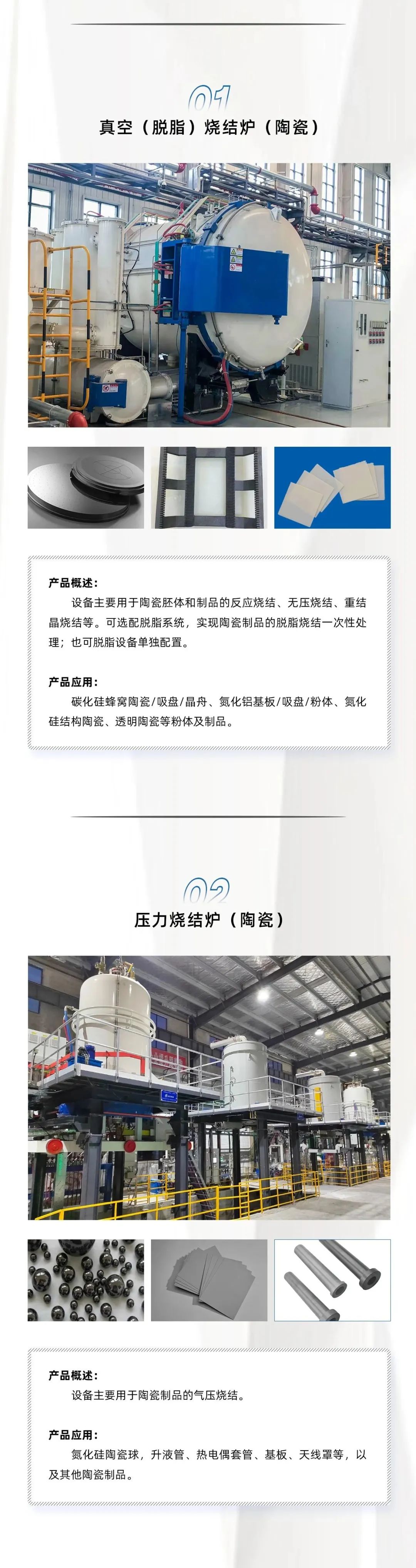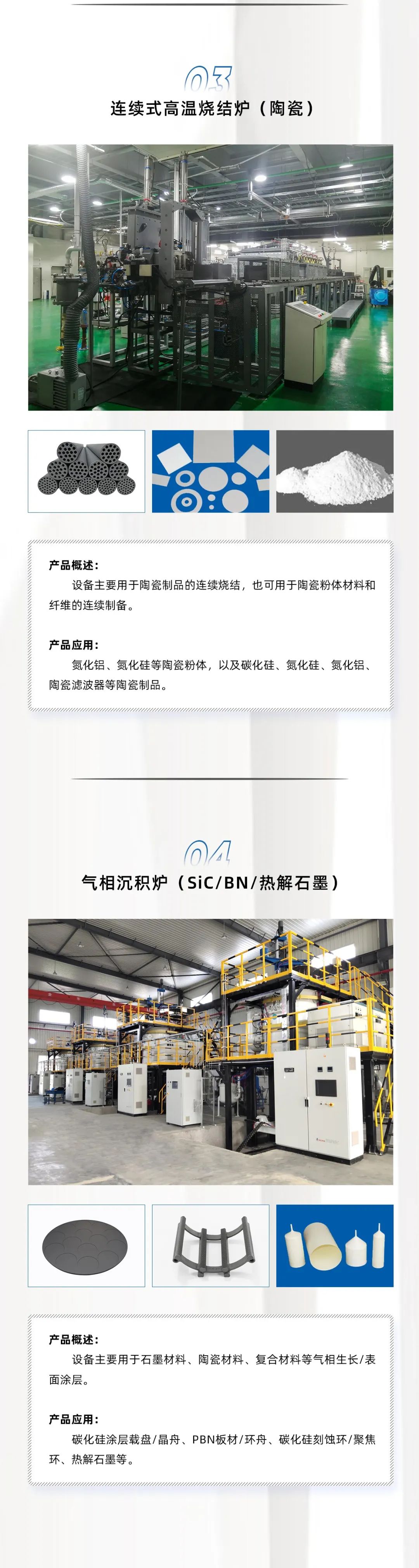 公司以国家重大工程需求为牵引,专业生产制造“国外进不来,大企业不愿做,专业研究机构工程化做不好,普通小企业做不了”国家急需的特种装备。产品主要涵盖碳基/陶瓷基复合材料装备、先进热处理/特种焊接装备、粉末冶金/有机固废资源化利用装备等。