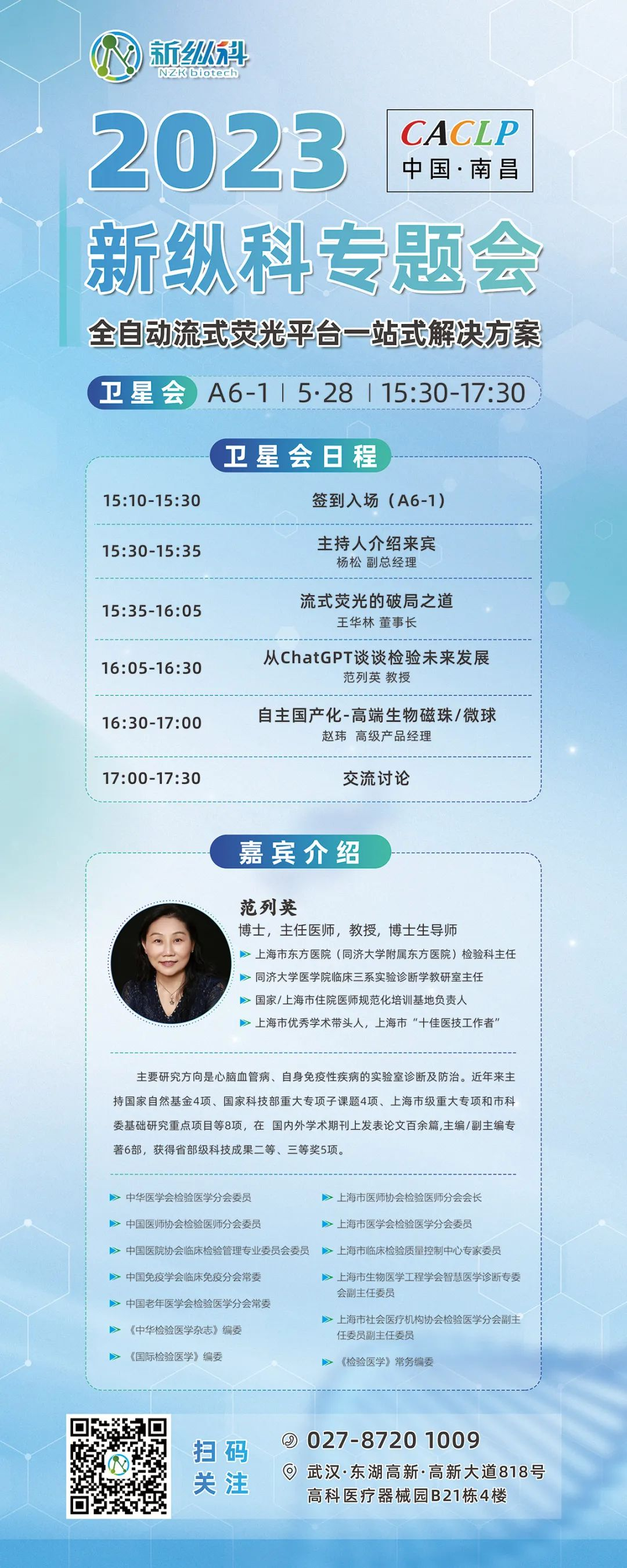 随着创新分子诊断技术不断发展,近年来流式荧光(液相芯片)技术逐渐受到关注,其可应用于新药研发、发现疾病诊疗标志物、蛋白质组学、基因组学等方面,在推动精准医学加速临床转化上具有重要作用。5月28日,湖北新纵科将携全自动流式荧光平台一站式解决方案亮相CACLP,诚邀各位在展会期间莅临展台(展位号:A3-2021),探讨技术平台与成果转化等问题。