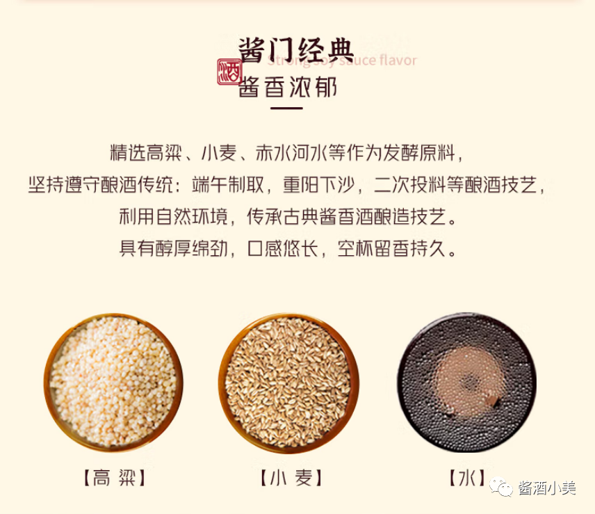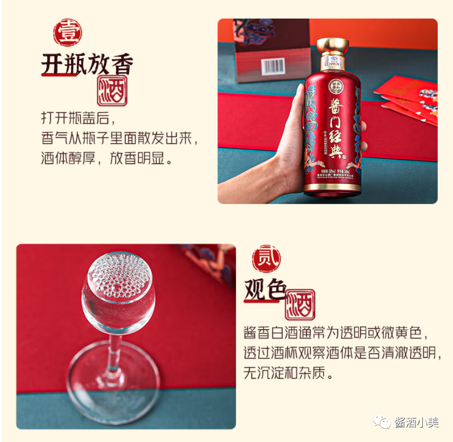 这款酒酱香浓郁,闻香味浓,略带蜜甜味,口感非常的柔和舒适;酱香味很重,酒质非常的细腻,中段感觉略苦,苦后返香,其香介于曲香和焦香之间,回味微带酸涩,满口的酱香之味,像是喝了那种很淡的酱油一般的清香感觉。