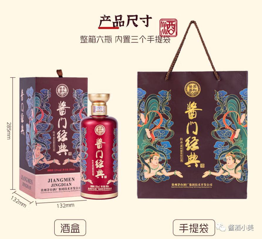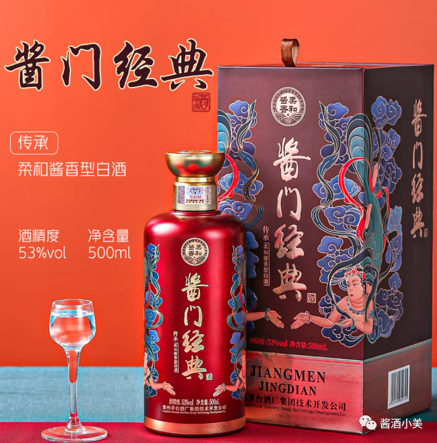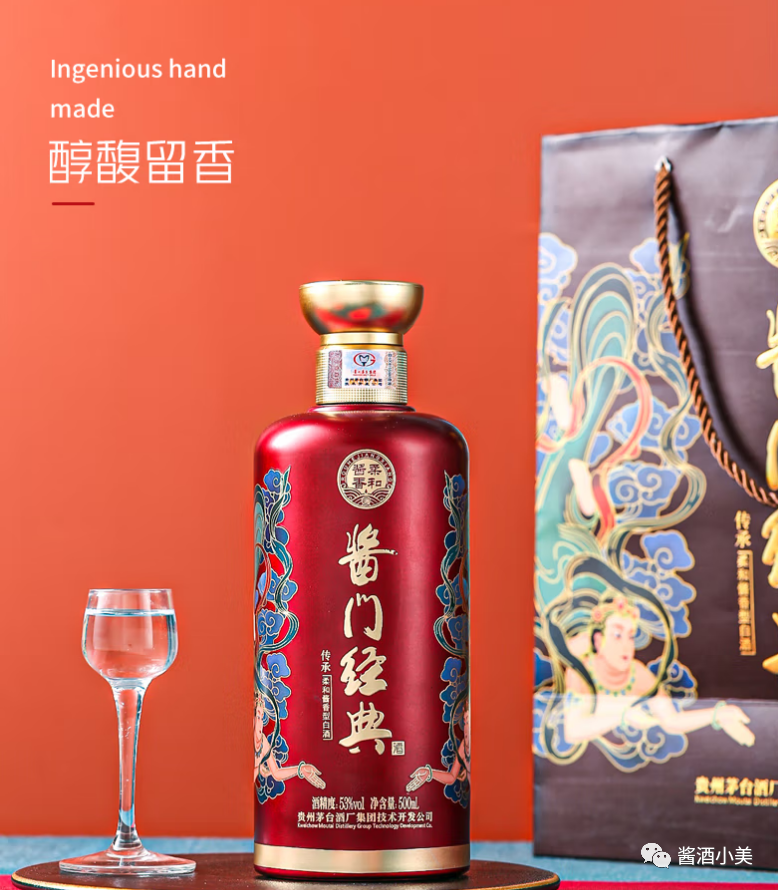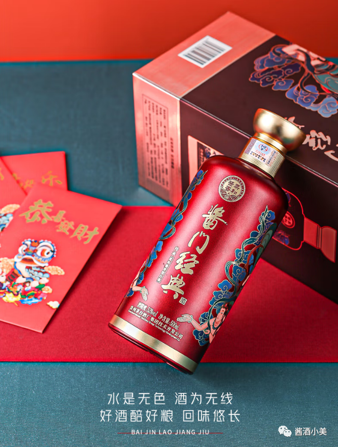 在设计上,酱门经典的两款产品延续传统酱香酒沉稳低调的风格,盒身与瓶身三处点睛之笔,也让“经典”呼之欲出。包装正面刻画的《源远流长》雕塑,展现独特的酿造工艺,成就酱门之魂;瓶身底部以时光雕刻的冰裂纹,展现岁月赋予的醇厚味道,成就酱门之韵;两款新品在传统茅型瓶上突出瓶肩,寓意肩负传承酱酒核心酿造工艺的使命,成就酱门之形。从内到外,无不彰显出酱门经典系列为经典而生的酱香独妙、为经典而追求的匠工风骨、为经典而传承的酱香气派。