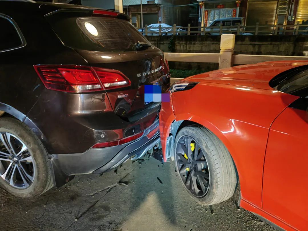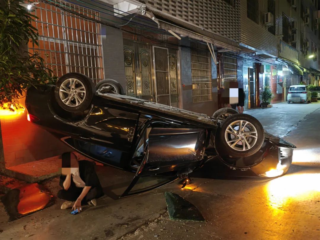 从视频中可以看到,黑色小型轿车在经过事故路段时,突然碰撞至停放在路边的红色小轿车,随后导致黑色小轿车直接“四脚朝天”翻倒在路面上。而被撞的红色小轿车由于惯性,碰撞到停在前面的越野车尾部,致三辆车受到不同程度损坏。