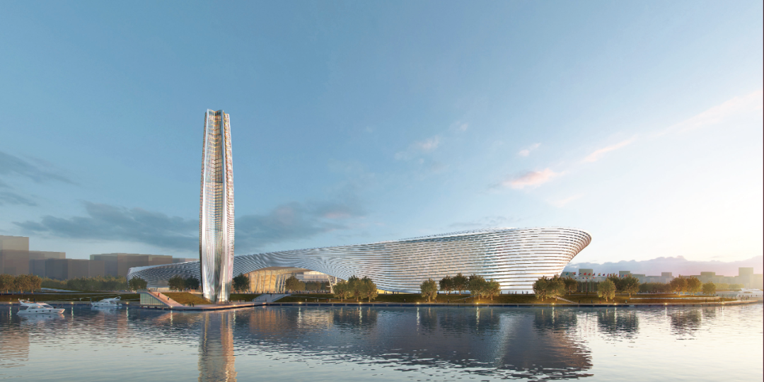 郑州国际文化交流中心项目位于郑东新区龙湖内环北路与龙源西二街交叉口,南靠北龙湖,北邻中原科技城核心区域,总建筑面积约31万平方米,仅地上建筑面积就有约16万平方米,总投资额为50亿元。