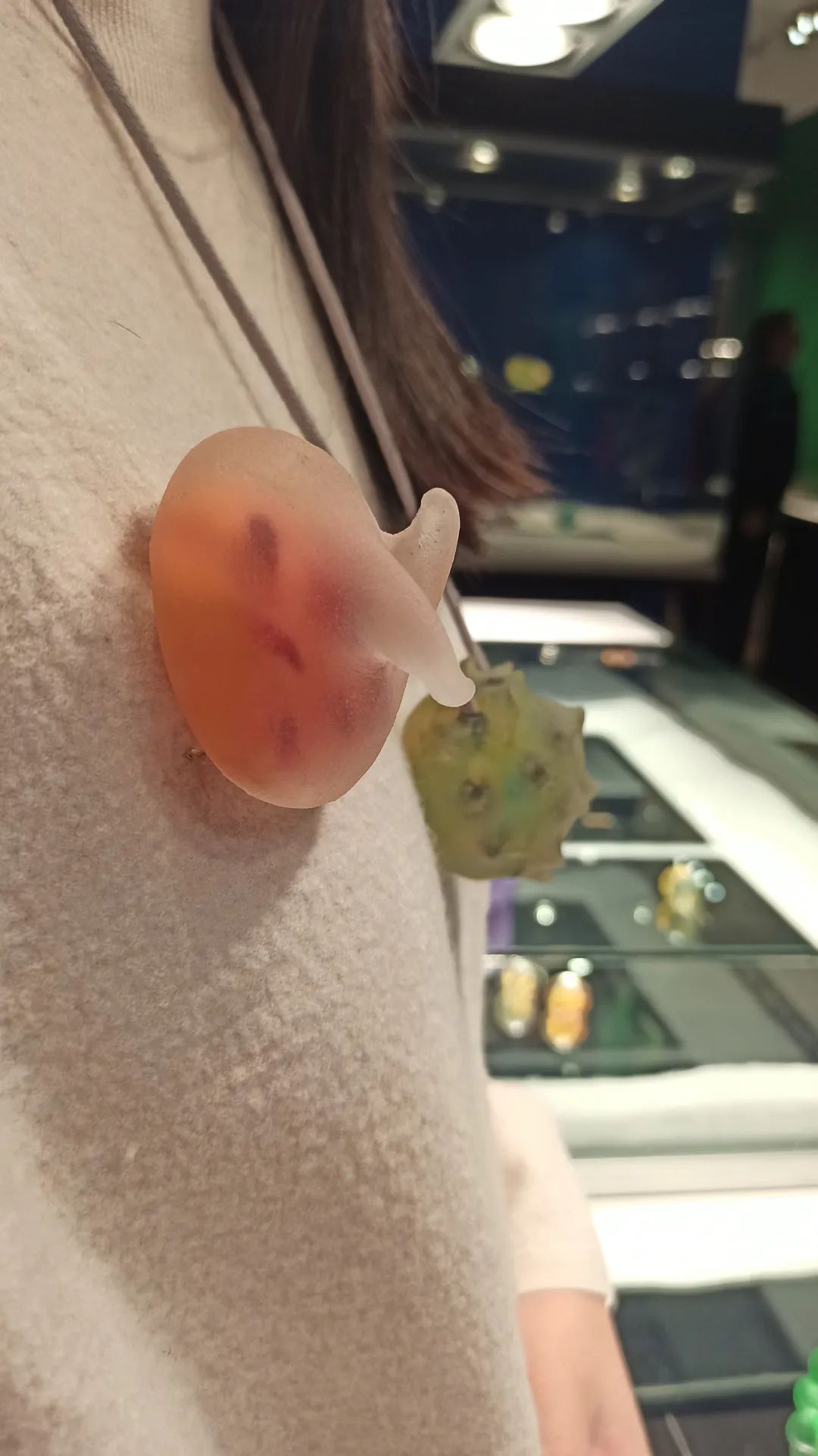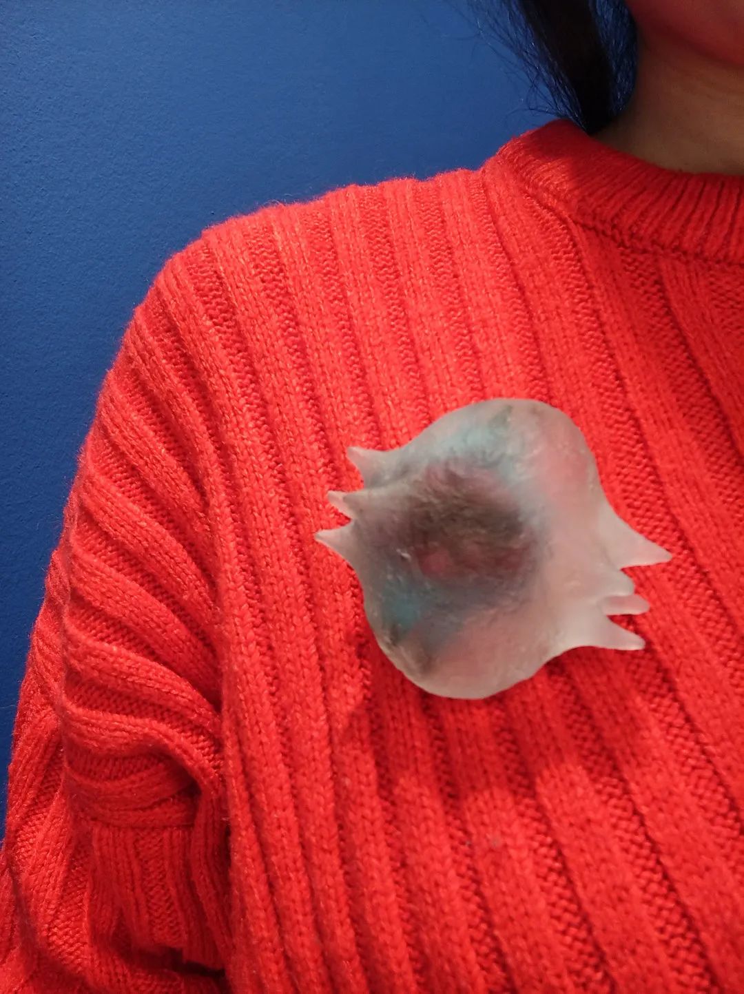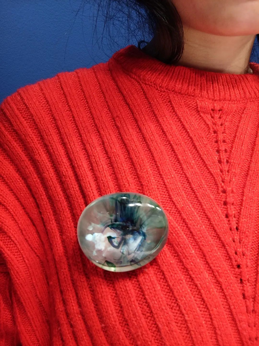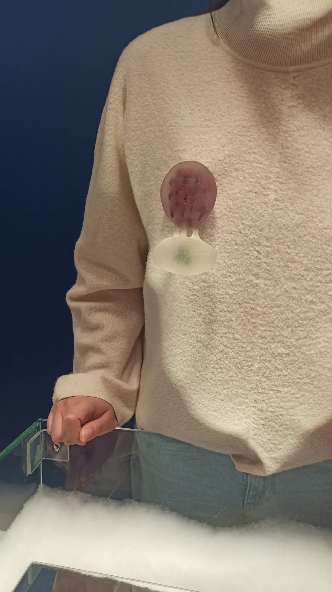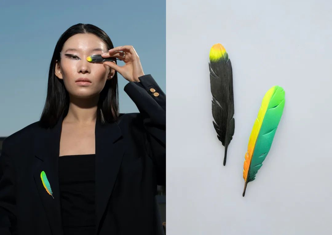 以下所有现场实拍作品都来自Xihan的最新系列Being in Fog,作品材料为树脂和颜料,首饰部分的配针部分为金制或是不锈钢制。