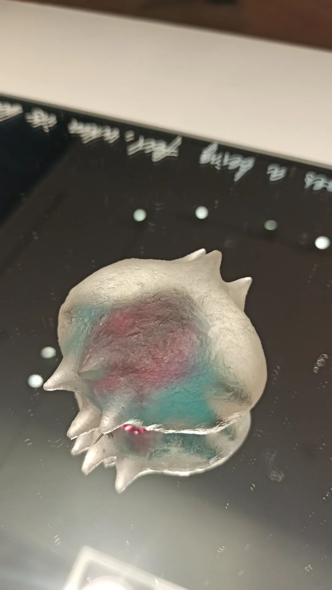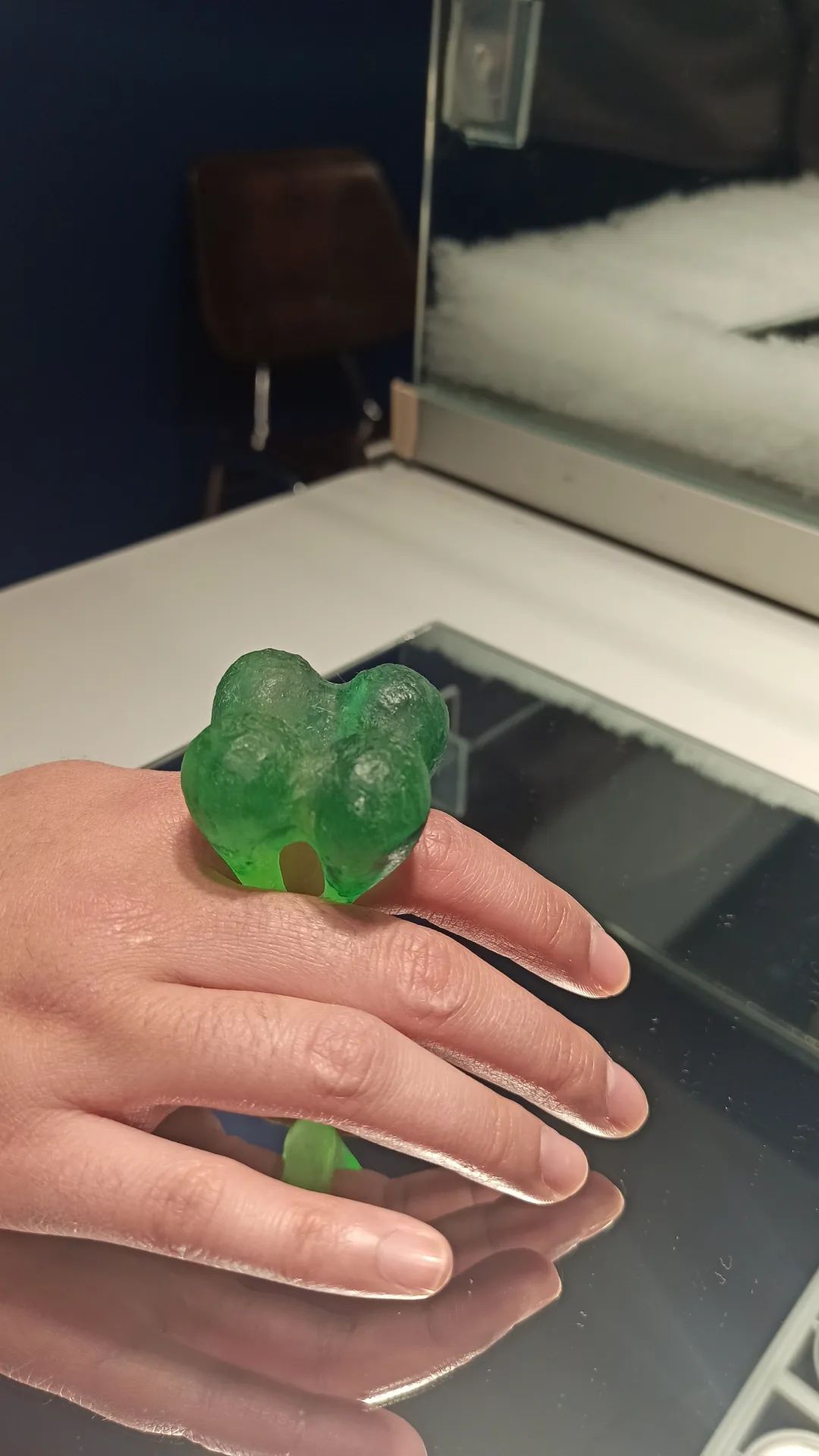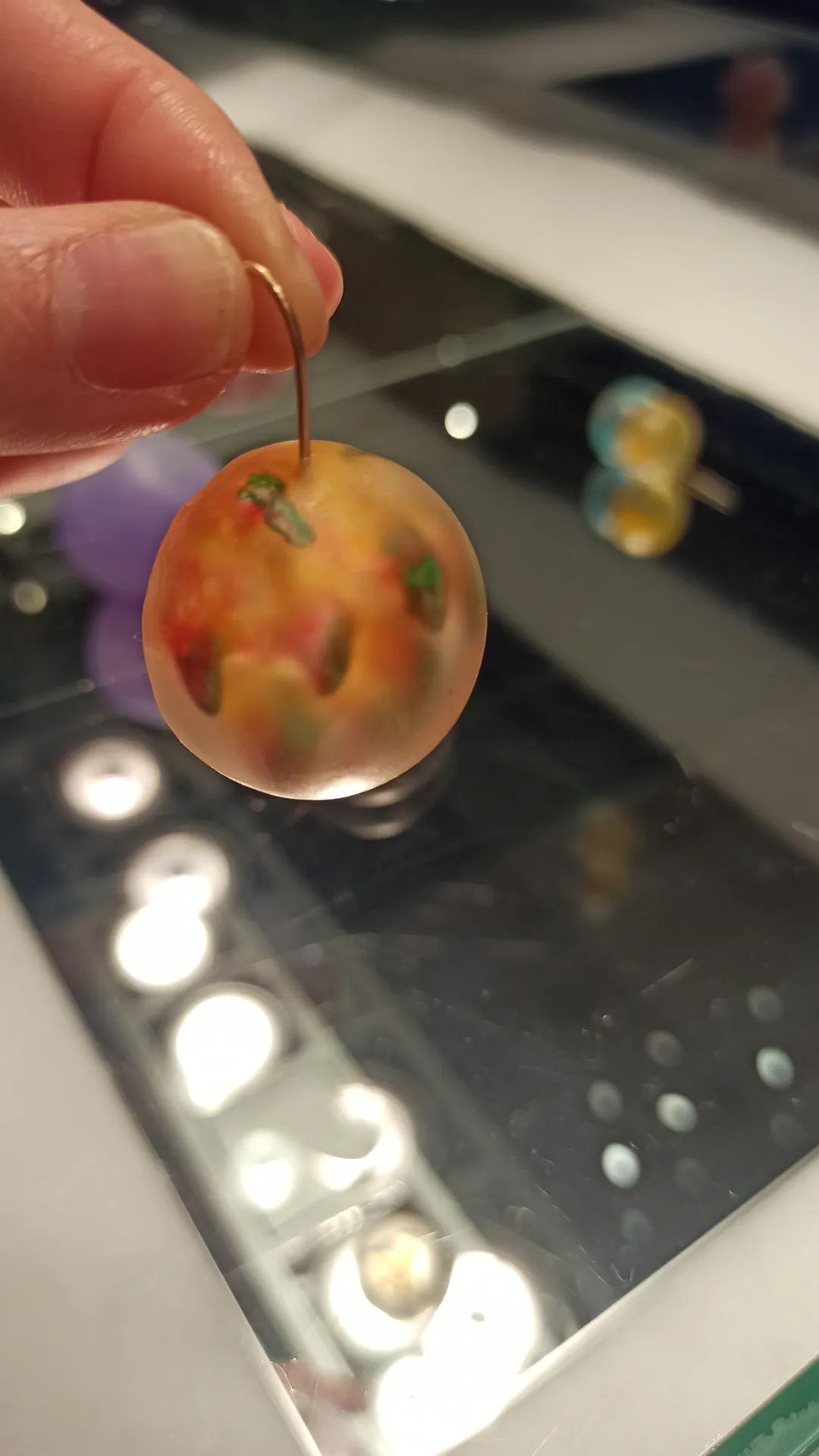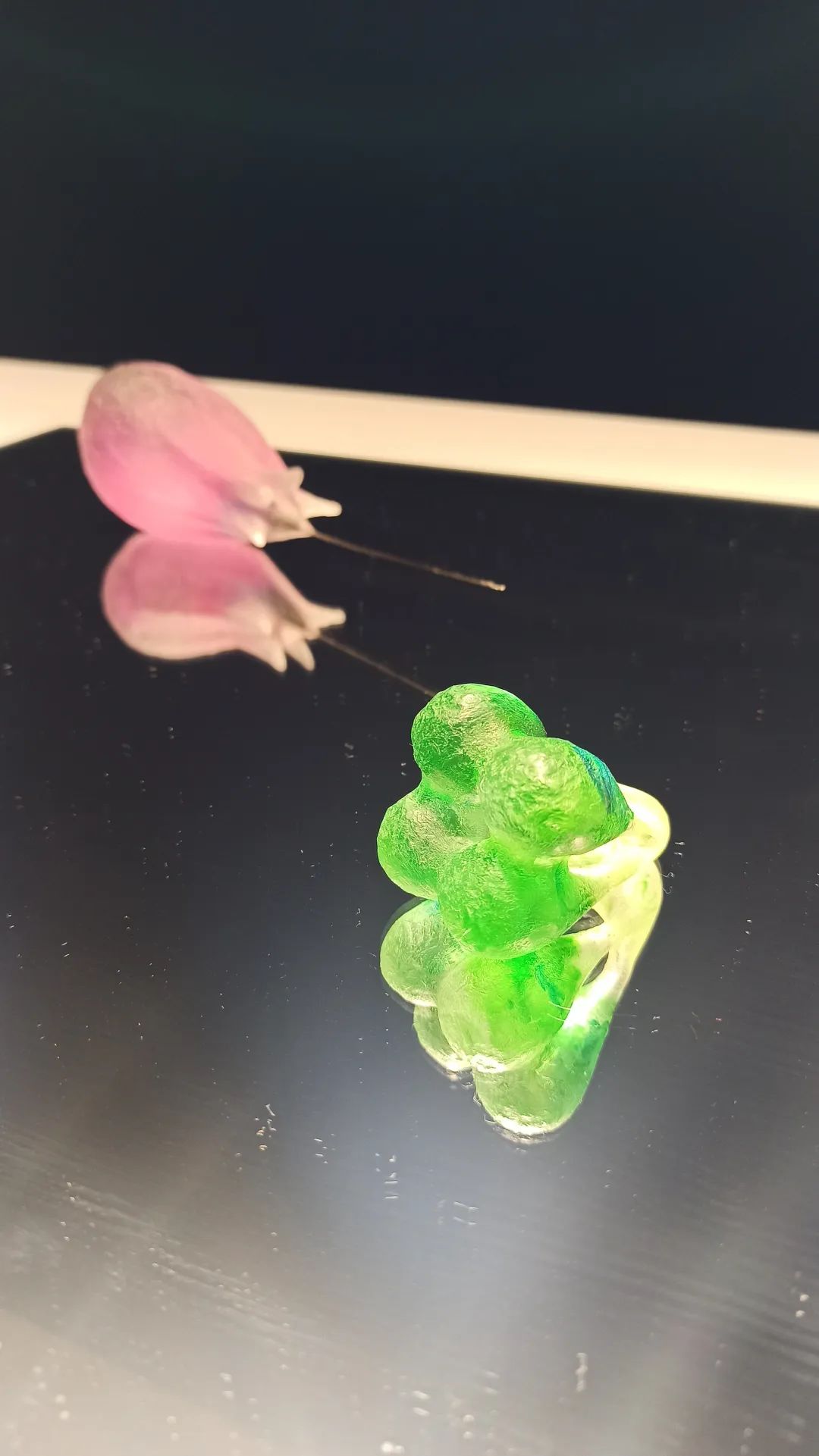 以下所有现场实拍作品都来自Xihan的最新系列Being in Fog,作品材料为树脂和颜料,首饰部分的配针部分为金制或是不锈钢制。