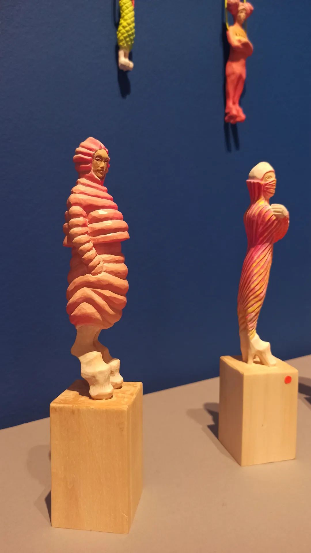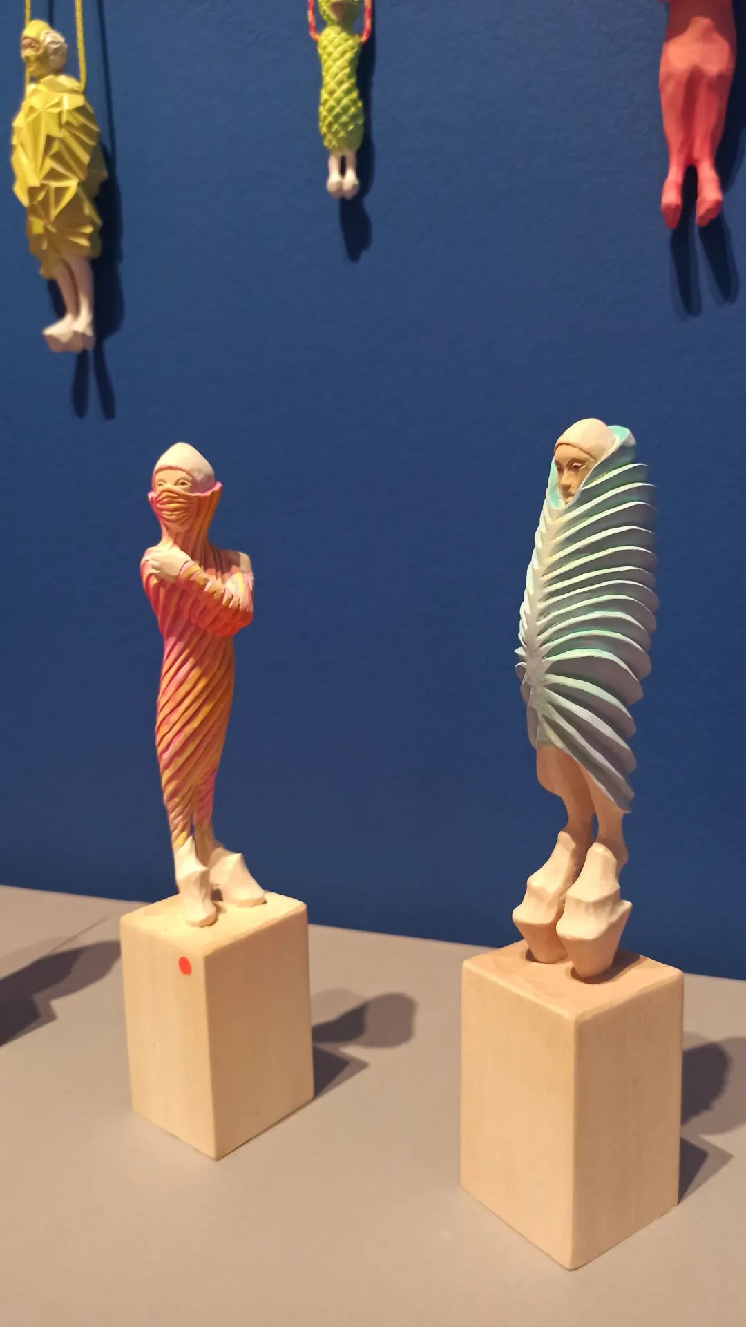 木雕小人们的脸部表情,衣服的褶皱,身体的曲线……从大件的雕塑到小件的挂坠,都无一不呈现了Katharina的刀下功力。小人们的五官细腻,衣服的褶皱十分有层次感。明明材料都是椴木,但是有些衣服一眼就看得出有PVC的质感,有些好像参杂了棉麻的原料。