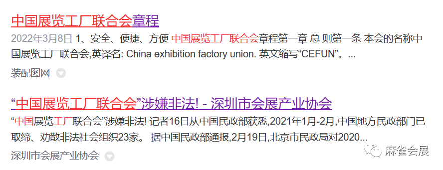 2021年,民政部通报:取缔、劝散非法社会组织23家,其中就包括“中国展览工厂联合会”。实际上,民政部几乎每年都会查一批、取缔一批非法社会组织。但回过头看,会展业还有一大批这样的存在!
