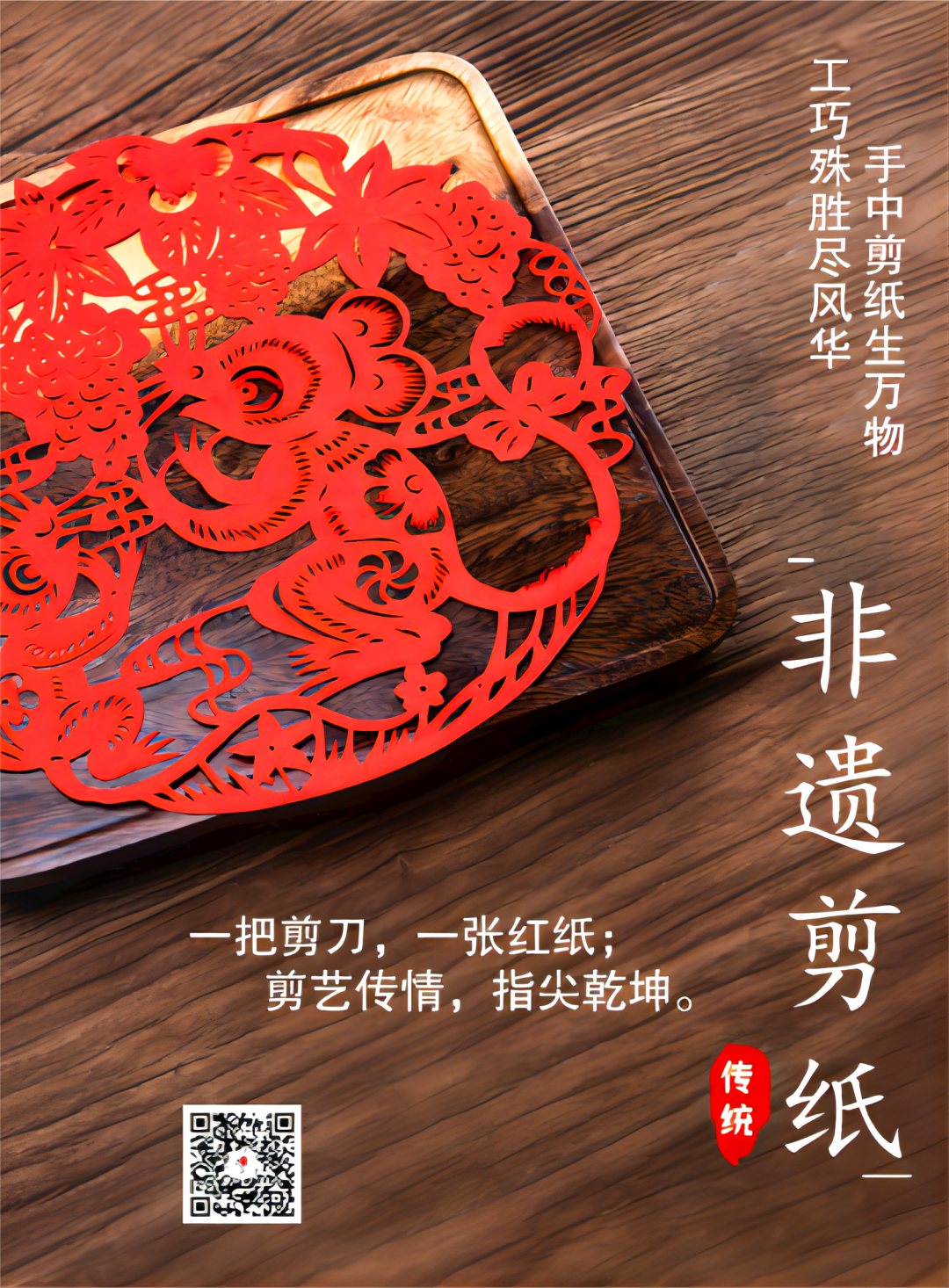 手中剪纸生万物,工巧殊胜尽风华。一张红纸,一把剪刀。绝美的中国剪纸“剪出”中国气派!于指尖处飞舞芳华,体现中华民族民情民风。中国剪纸作为国家非物质文化遗产如同一颗常春藤古老而长青。一折一剪,感受非遗魅力,传承中华文化。