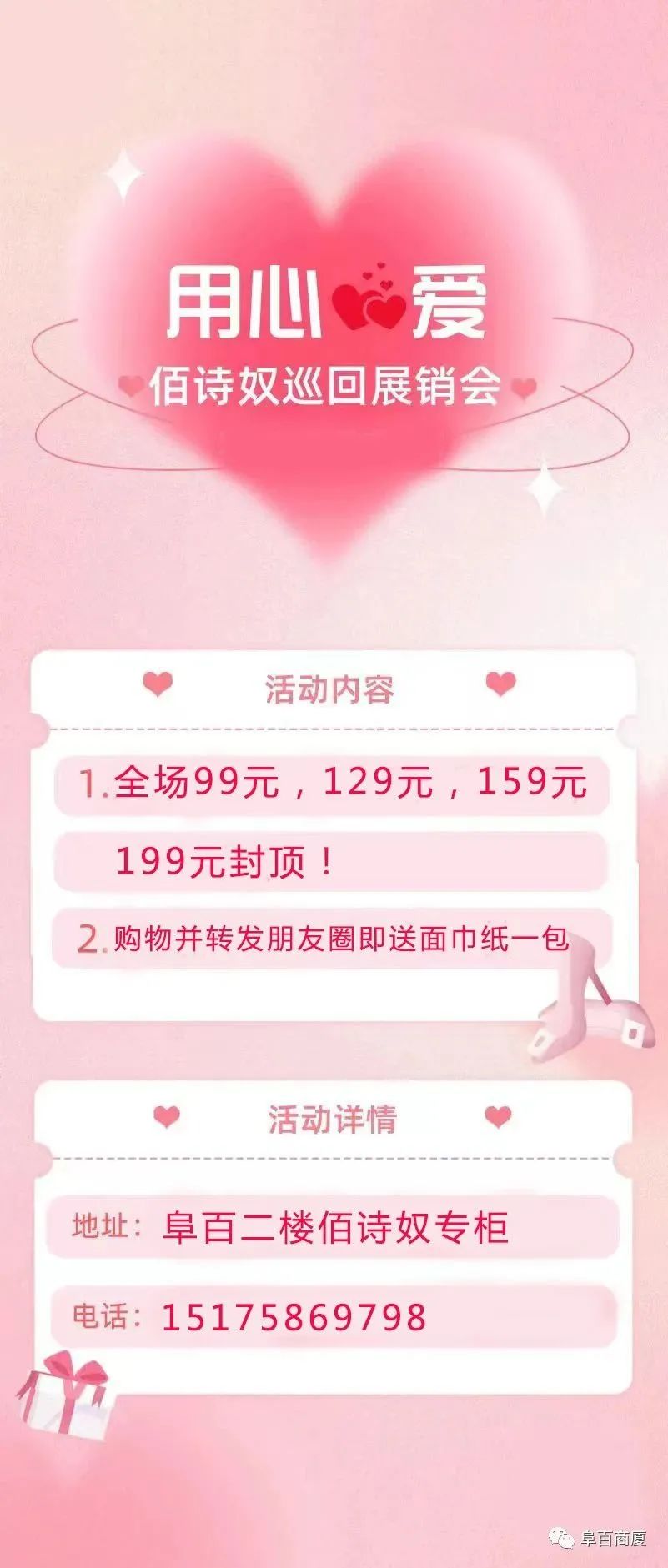 阜百商厦佰诗奴“用心爱”巡回展销会,回馈粉丝,