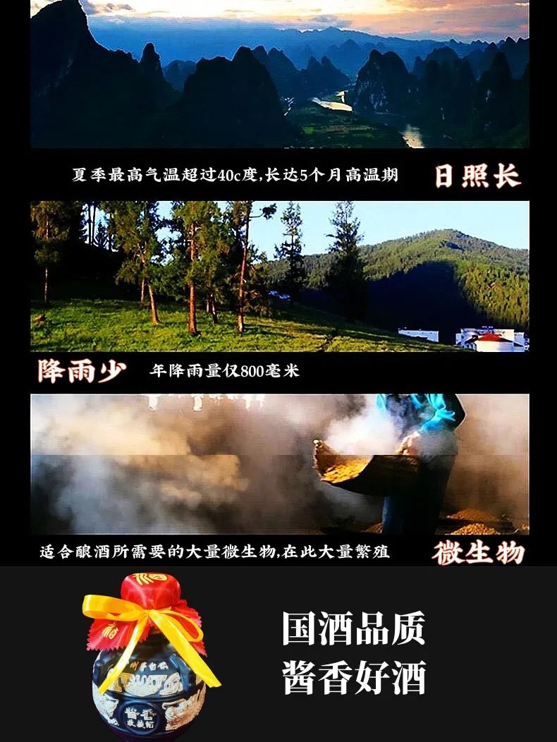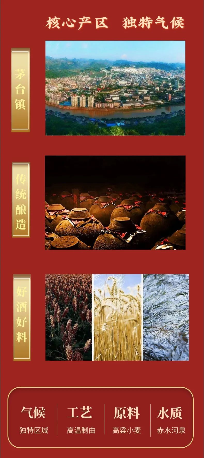 茅台镇酱酒,独特的地理位置,独特的气候,地道糯高粱,赤水河洞泉水,采用高温馏酒,传统工艺,坚持匠心精神,陶罐存储,精酿出不一样的好酒!