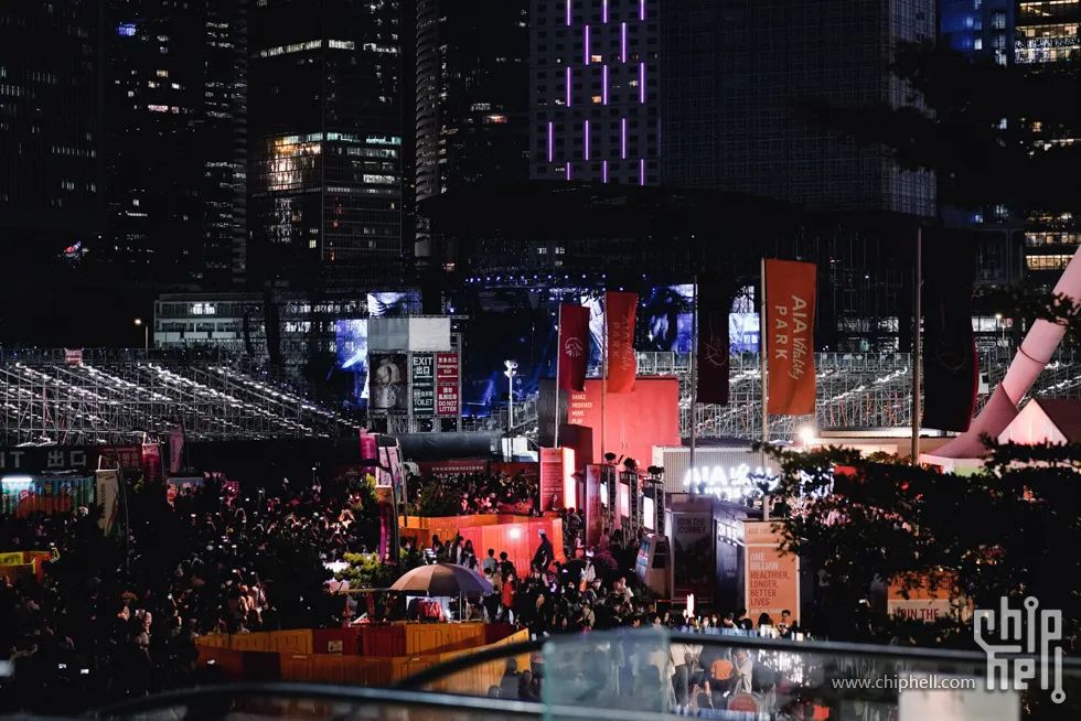 两杯下肚头晕,结账后准备穿过维园回铜锣湾。