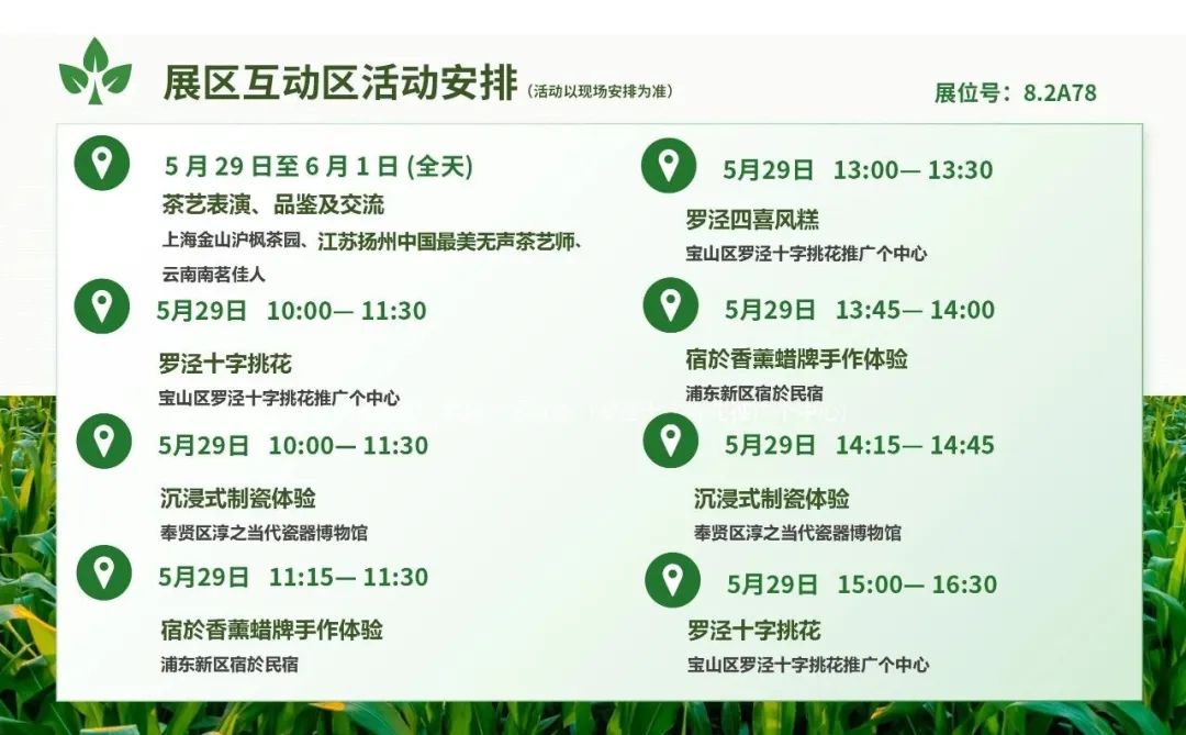 集中展示上海9个涉农区40余个休闲农业和乡村旅游项目,包括美丽乡村、星级景点(园区)、乡村民宿等多种类型,以及亲子互动、科普教育、非遗技艺、农耕体验等多种新业态。