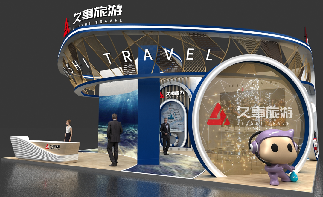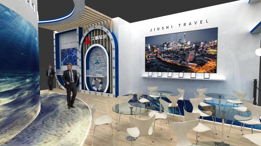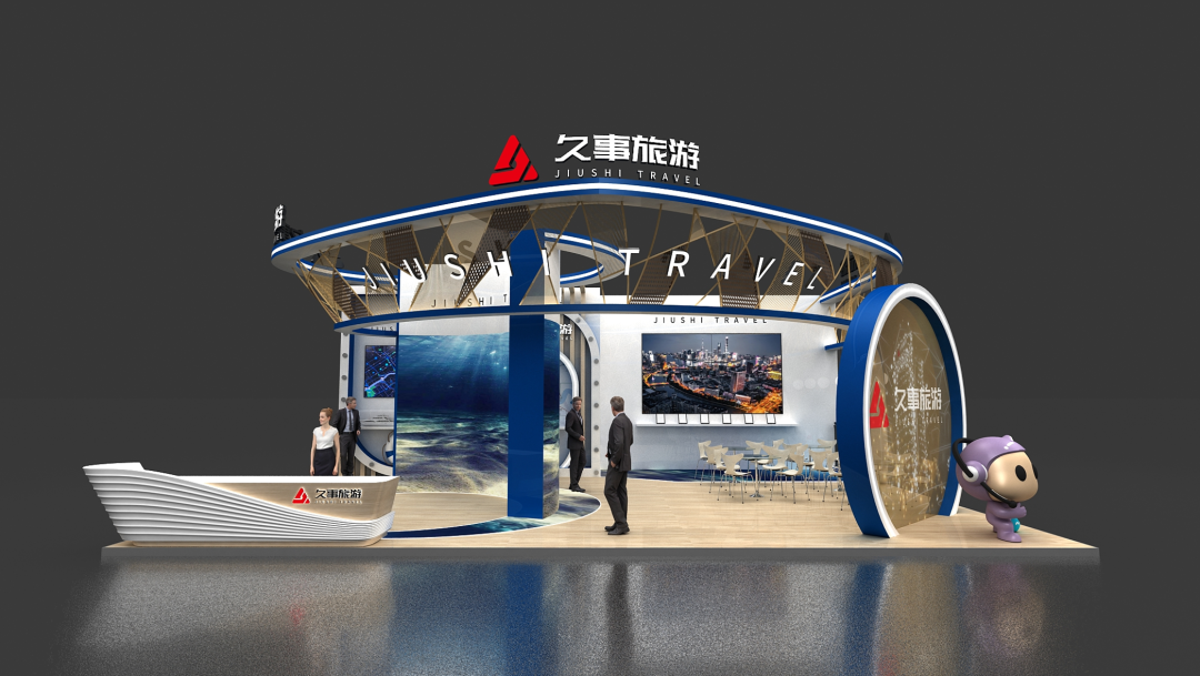 形象展示区:两块曲面大屏滚动播放久事旅游市场宣传片、各类活动小视频及展台主KV动画,并用于6场新品推介;