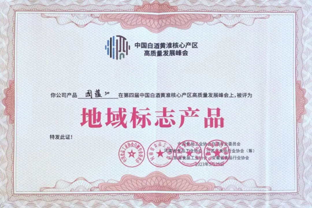 古贝春国蕴30产品喜获“中国白酒黄淮核心产区地域标志产品”最高奖