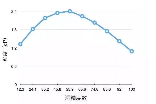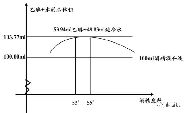 初中化学就曾讲到酒精与水是可以以任意比例互溶的,我们甚至能在实验室看到纯度为99.99%的酒精。那么问题来了,既然可以以任意比例互溶,为什么高端白酒会将度数设置在53°左右呢?因为水分子的机构是V型,而在有机化学中,甲烷是正四面体的结构,乙基则是甲烷中的一个氢被次甲基替代。所以水分子与乙醇形成的是一种空间的团簇结构。不同的浓度的白酒,水分子与乙醇分子由于氢键形成的团簇结构完全不同,这种团簇结构最终也就影响了白酒的口感。而同样影响这种团簇的还有温度,不同温度也会影响团簇的结构,进而影响我们的品酒体验。所以将纯净水与乙醇的总体积为纵轴,以酒精度数为横轴做图,发现53.94mL的乙醇与49.83mL的纯净水混合之后得到的100mL酒精混合液下降的体积是最大的,达到3.77mL,这种状态下乙醇分子的自由度最低,口感则更趋于柔和,这时的酒精浓度就是53~55°。所以我们说,52°~54°的白酒稳定度最好,最醇和、口感最好、能够提供最佳饮酒体验的。反过来看我国的高端白酒度数分布,也是在52°~54°之间,像52°的五粮液,53°的茅台、52°的汾酒,54°的董酒,53°的郎酒。另外,酒精度数与酒水的粘度之间,也存在“倒U型”曲线关系。最大的粘度值所对应的酒精体积,同样53-55°。此外,除了口感,稳定性等因素外,53度也是中国传统文化中“五十三”的吉祥数字之一,被认为具有吉祥意义,更容易被大众所接受哦。