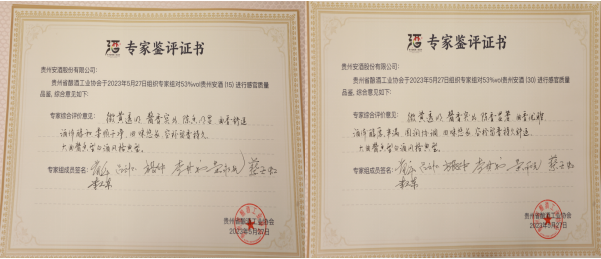 专家们通过“观、闻、品、评”,对“安酒· 15”“安酒·30”这两款产品均给出了不俗的评语。“安酒· 15”:微黄透明、酱香突出、陈香明显、曲香舒适、酒体醇和、柔顺干净、回味悠长、空杯留香持久,大曲酱香型白酒风格典型。“安酒·30”:微黄透明、酱香突出、陈香显著、曲香优雅、酒体醇厚丰满、圆润协调、回味悠长、空杯留香持久舒适,大曲酱香型白酒风格典型。