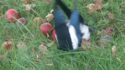 吃多了地上发酵水果的喜鹊