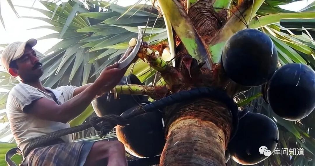 当地人会修剪成熟的椰棕榈树树冠,并在树上挂上塑料壶,收集到的树液便成为了制作棕榈酒的原料。这种富含糖分的树液在短时间内发酵,酒精含量约为3.1%,是当地的特色传统酒。