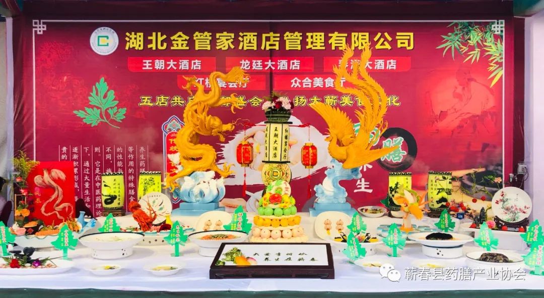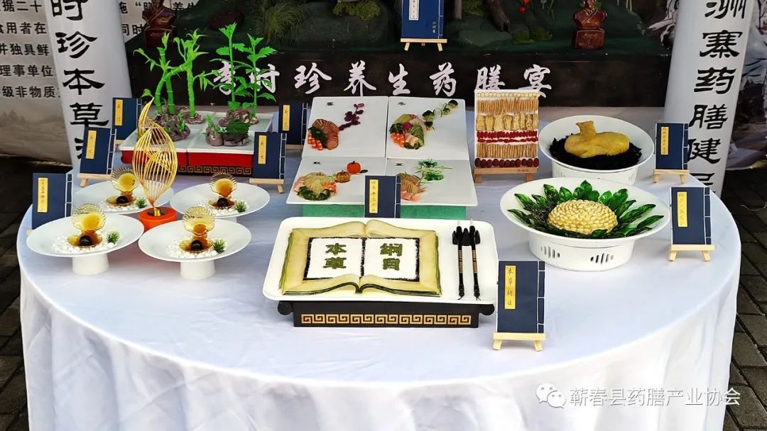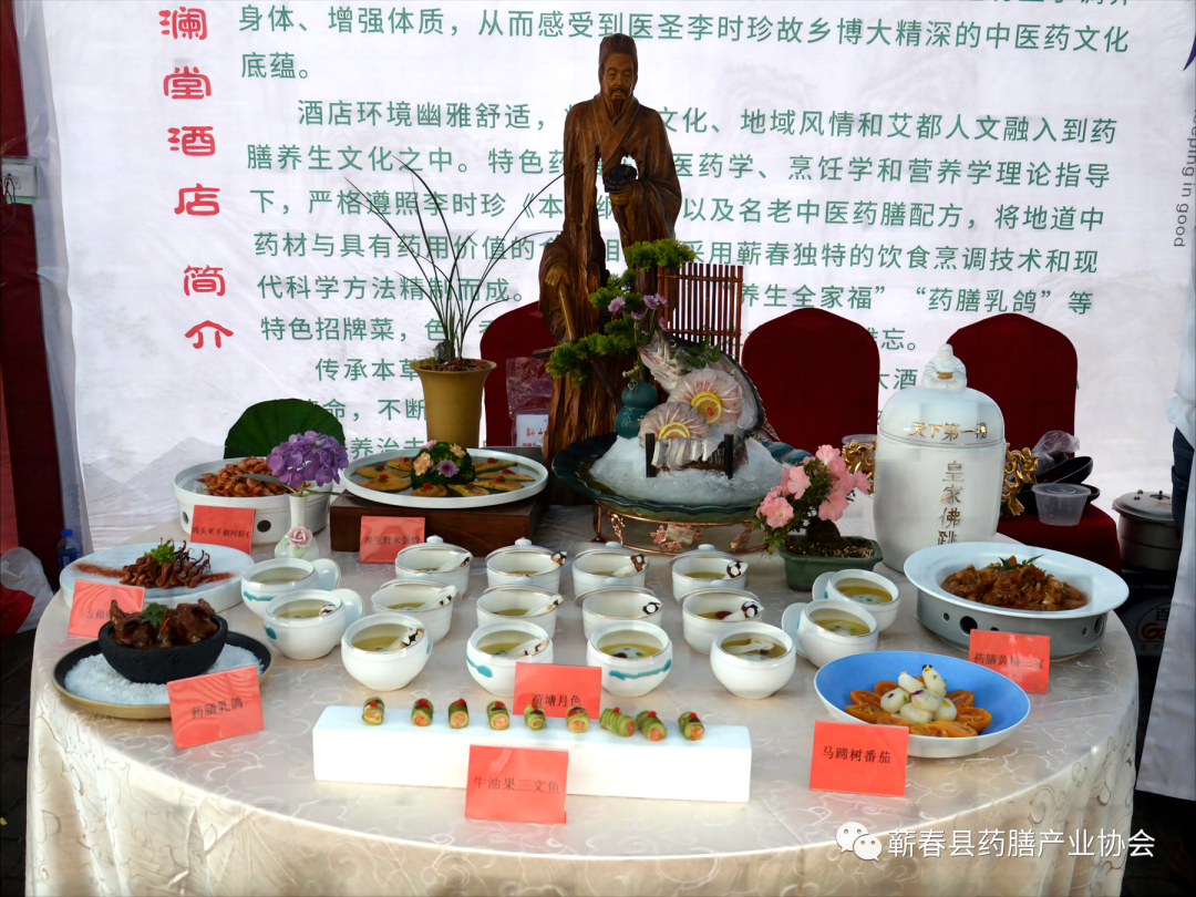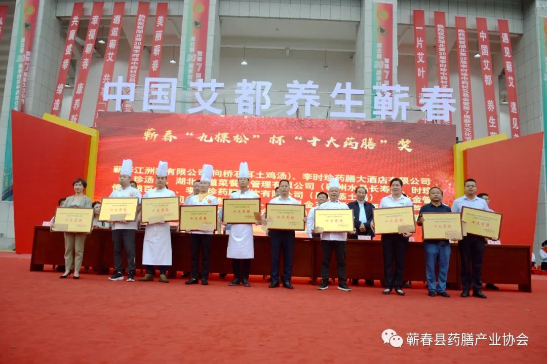 蕲春江洲寨餐饮有限公司选送的《向桥石耳土鸡汤》、湖北李时珍药膳大酒店有限公司选送的《八珍汤》、湖北七道菜餐饮管理有限公司选送的《蕲州水晶长寿丸》、《时珍佛手酿百合》、蕲春李时珍养生药膳餐饮有限公司选送的《黑药豆蒸土鸡》、湖北金管家管理有限公司选送的《金牌腊香鸡》、蕲春金三利颐养堂酒店店选送的《葫芦佛手山药》、蕲春观澜堂酒店选送的《黄精烧三宝》、檀林镇选送的《薏仁米炖猪蹄》、张榜镇选送的《羊肚菌煲猪肚》荣获蕲春“九棵松”杯“十大药膳”奖,主席台领导为10家获奖单位颁发奖匾、奖金。