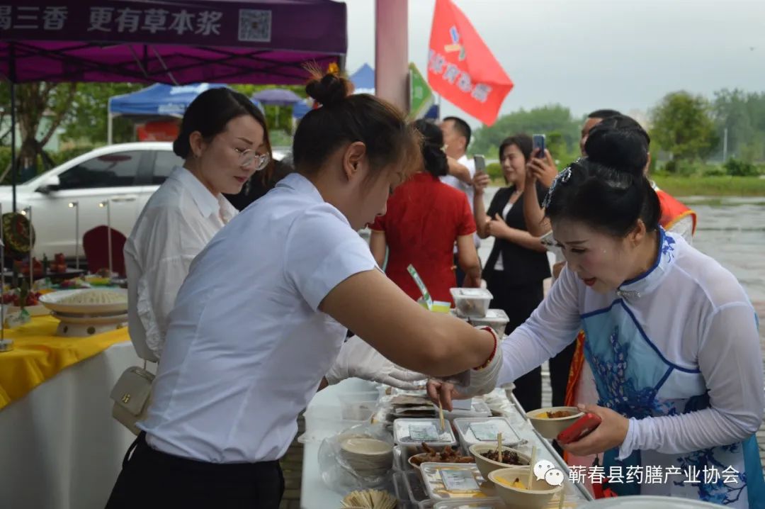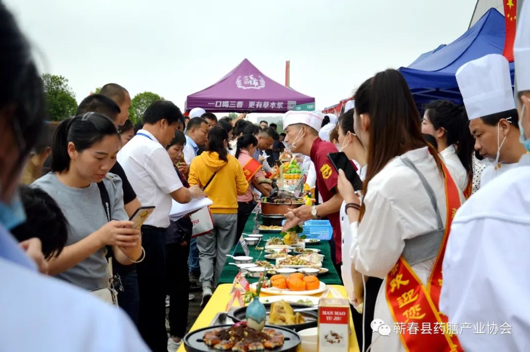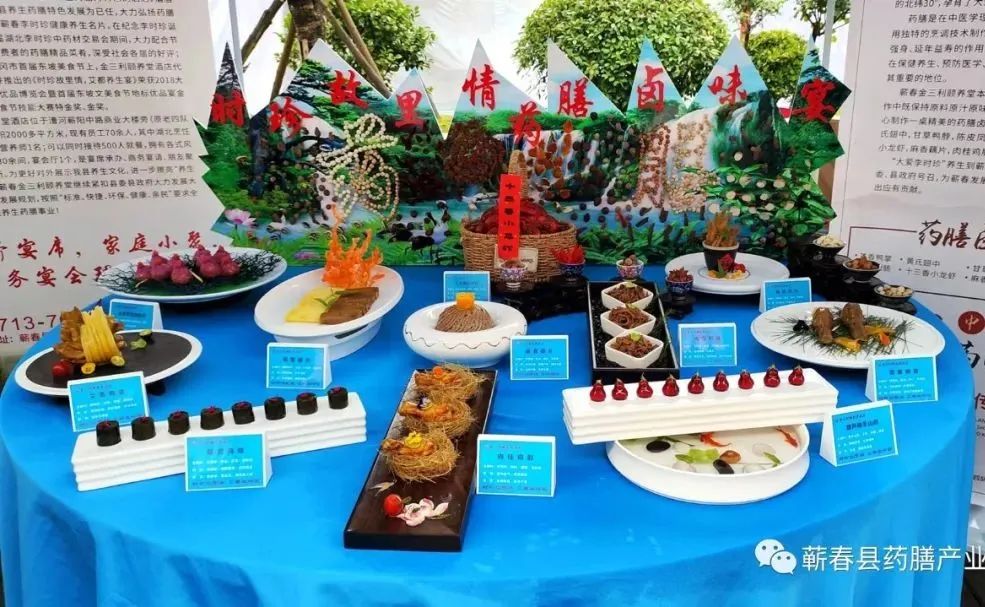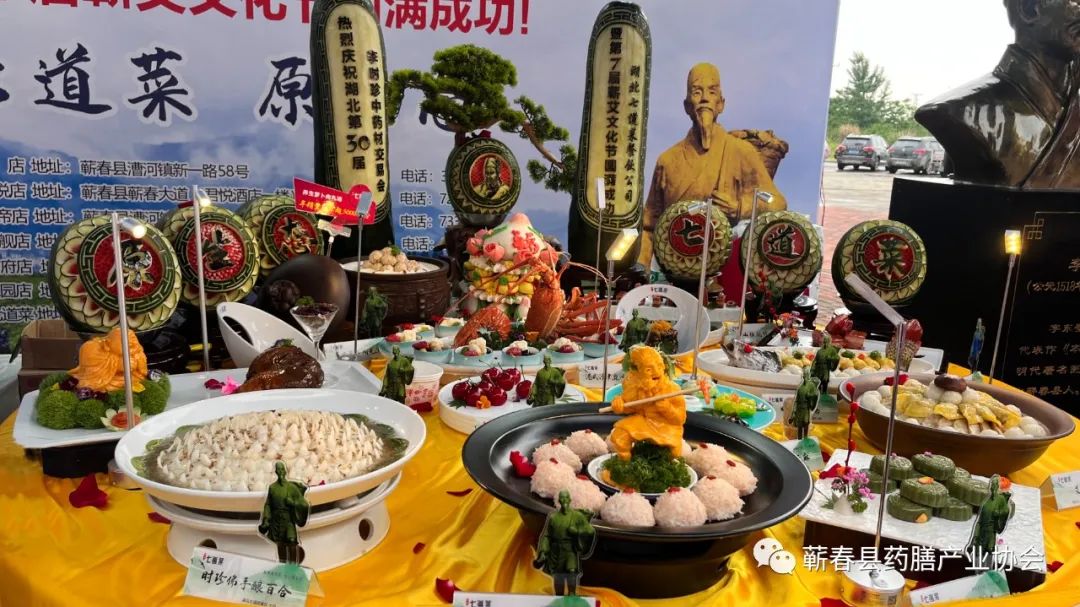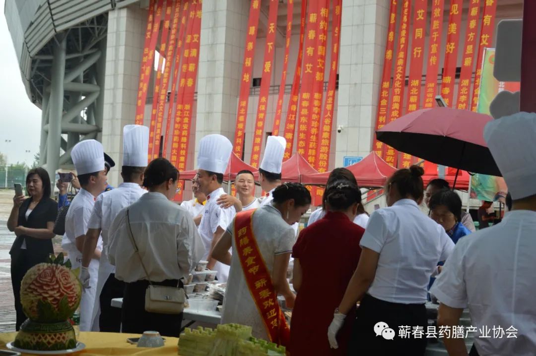 蕲春江洲寨餐饮有限公司选送的《向桥石耳土鸡汤》、湖北李时珍药膳大酒店有限公司选送的《八珍汤》、湖北七道菜餐饮管理有限公司选送的《蕲州水晶长寿丸》、《时珍佛手酿百合》、蕲春李时珍养生药膳餐饮有限公司选送的《黑药豆蒸土鸡》、湖北金管家管理有限公司选送的《金牌腊香鸡》、蕲春金三利颐养堂酒店店选送的《葫芦佛手山药》、蕲春观澜堂酒店选送的《黄精烧三宝》、檀林镇选送的《薏仁米炖猪蹄》、张榜镇选送的《羊肚菌煲猪肚》荣获蕲春“九棵松”杯“十大药膳”奖,主席台领导为10家获奖单位颁发奖匾、奖金。