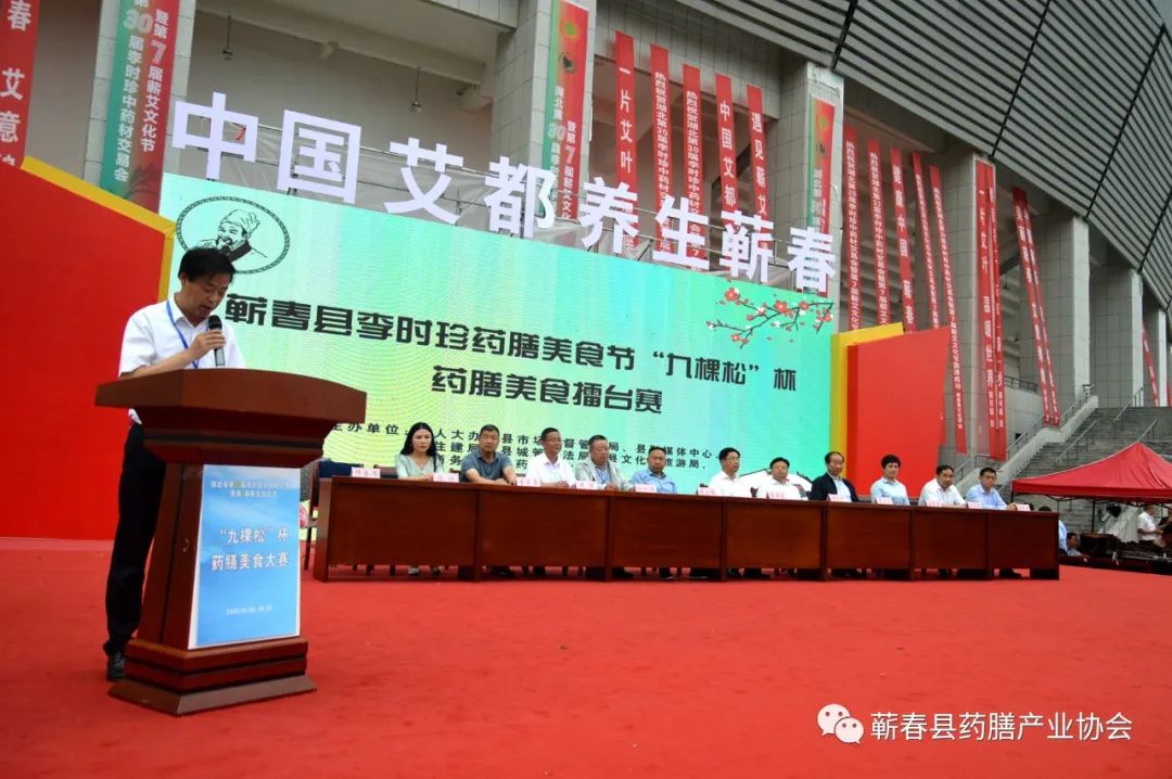 “膳”待天下客,“食”现健康梦。2023年5月26日,随着湖北省第30届李时珍药交会暨第7届蕲艾文化节的大幕徐徐拉开,蕲春县李时珍药膳美食节“九棵松”杯药膳美食擂台赛在我县奥体中心鸣锣开赛了,本次大赛由县市场监督管理局牵头,县人大,县融媒体中心、县商务局、县住建局、县城管执法局、县文化和旅游局、县药膳产业协会联合主办,横车镇九棵松村党委冠名。县委书记胡安元亲临比赛现场观摩指导,县人大常委会主任蔡寿益、副县长周志刚出席活动,县直机关各部门负责人参加大赛的评选和颁奖活动,来自全国各地餐饮业市场主体31家共计100余位药膳厨艺技师参加了比赛,并特邀浙江磐安药膳科技集团有限公司董事长蒋公标、北京永保青春养老服务有限公司董事长吴永先、天马科技集团蕲春分公司经理施芳、湖北省药膳食疗配制技术专业委员会会长郭四海等客商参加药膳美食赛事活动。蕲春李时珍中医药职业技术学校烹饪高级讲师范先庆担任了赛事评选组织工作。