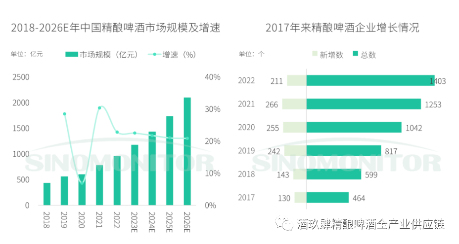 中国精酿啤酒市场呈现出截然不同的局面,在啤酒产品高端化及健康化趋势下,精酿啤酒消费量以惊人的幅度扩容,增长率居高不下。预计2025年,中国精酿啤酒消费量可达到25亿升,同比增长近30%。