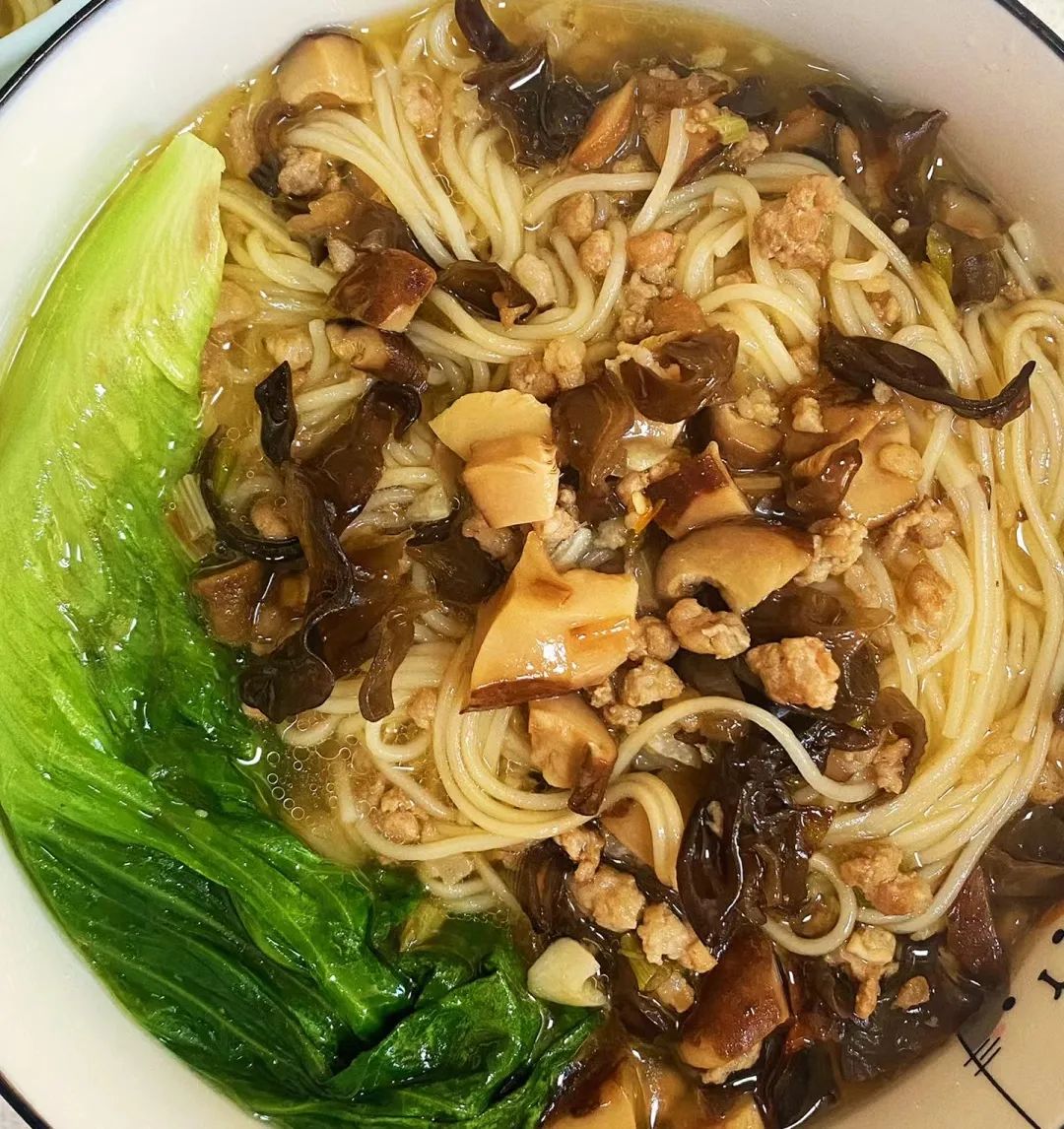 1.油菜香菇卤子面条