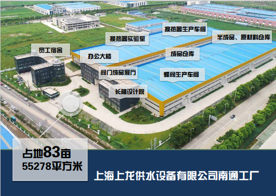 上海上龙供水设备有限公司、上海上龙阀门厂成立于2001年,是一家专业致力于高新科技阀类的研制生产与经营的企业集团,所生产的阀门均为具有自主知识产权的产品,拥有阀类发明专利28项,实用新型专利56项,是上海市高新技术成果转化企业和专利试点企业,中国城镇供水排水协会和全国建筑给水排水协会的成员单位,最新通过了ISO9001:2015质量管理体系认证、ISO14001:2015环境管理体系要求,先后参与编制给排水领域的国家标准和行业标准20项,其控制类阀门的技术水平在同行业中处于领先地位,其中防回流污染技术达到国际先进水平。