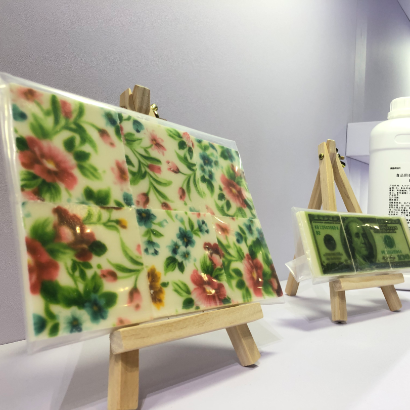 展会上,我们以不设限的创意赋予了食品生态的多样性:糖霜饼干、马卡龙、巧克力、棒棒糖、甜甜圈、可食性环保餐具等一个个琳琅满目的食品打印案例。