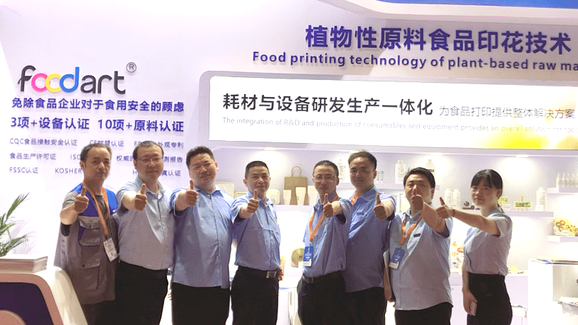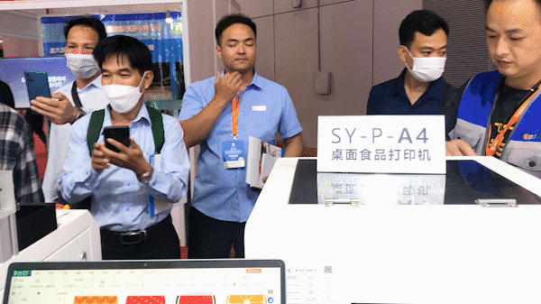 膳印科技自主研发生产的FP-542-B全彩色高速食品打印机及植物性原料食品印画技术成为了展会焦点,不仅有慕名而来的合作商,还有业内专家上前咨询学习交流,更是吸引了各界人士纷纷驻足观望。