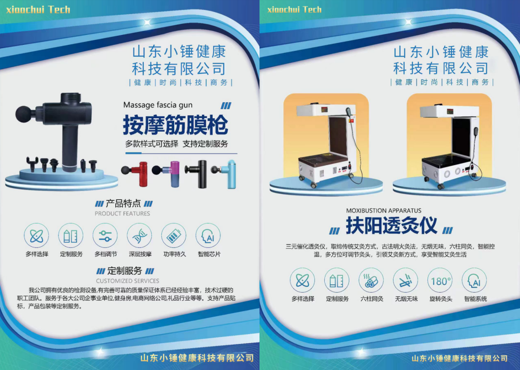 山东小锤健康科技有限公司位于山东省德州市,是一家致力于高科技产品研发、生产、销售为一体的高新技术企业。公司主营康养类产品如筋膜枪、筋膜球、艾灸机等,公司拥有一支经验丰富的研发团队和一支高效的管理团队,致力于为客户提供优质的产品和服务。公司秉承“创新品质、用心服务客户”的经营理念,为客户创造价值,为社会做出贡献。