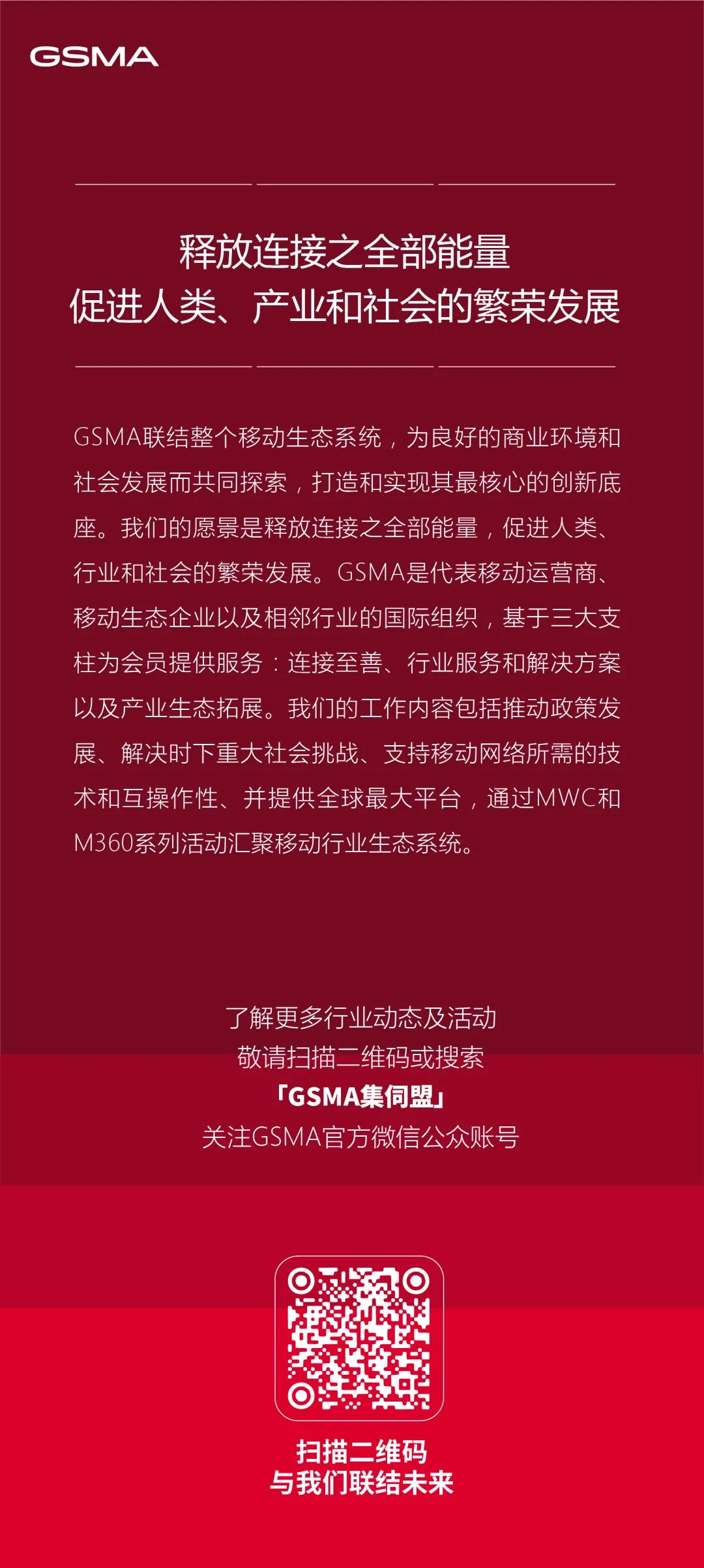 GSMA作为国际行业组织,通过与移动运营商和产业生态的联合,赋能社会可持续发展,共同实现联合国可持续发展目标。