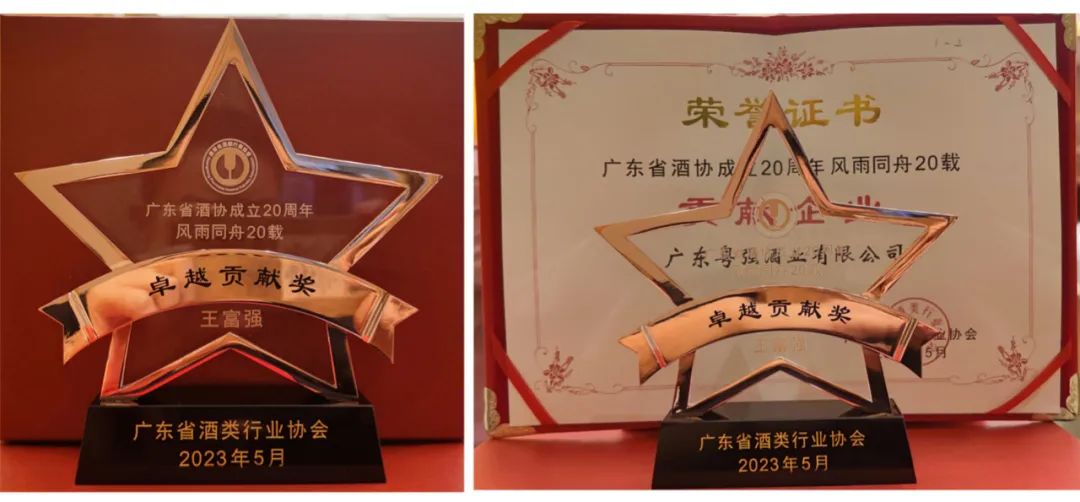 当天广东酒业2022年度“粤樽奖”评选结果正式揭晓,现场共颁出年度优秀企业、年度新锐榜样人物、年度社会责任榜样企业、年度消费者欢迎产品及年度粤酒新锐产品等五大奖项,共77家企业、56名个人及58款产品获奖。其中,广东粤强酒业有限公司荣获“粤樽奖”2022年度优秀企业、社会责任榜样企业。总经理王双双荣获“粤樽奖”2022年度新锐榜样人物。大会第三天,广东省酒类行业协会20周年庆典活动正式举行。20年风雨兼程,20年初心不忘,大会回望了广东酒协走过的不平凡岁月,以及在服务企业、产业促进、科技研发等方面所做的努力,全票通过了《广东省酒协2022年工作报告》、《财务审计报告》。协会的发展,离不开成员企业以及大咖的支持,为了表彰积极配合协会工作,跟随协会一路成长的优秀企业及先进个人,大会隆重举行了20周年风雨同舟颁奖仪式。其中,广东粤强酒业有限公司获得“20周年风雨同舟贡献企业”荣誉称号,王富强董事长荣获“20周年风雨同舟卓越贡献奖”。20周年新征程,20周年再出发,在酒类产业格局发生深度变化,产能提升、品质提升、科创提升、文化提升、消费提升、服务提升逐渐成为酒类产业高质量发展的时代命题的新形势下,广东酒业协会以及广大粤酒厂商背负着振兴粤酒的新使命。作为广东酒业协会执行会长单位,国内酒类流通领域的专业酒商,广东粤强酒业也将积极履行使命,在广东省酒类行业协会的带领下,继续深耕酒类渠道,维护市场秩序,争取为粤酒的大流通,粤酒大振兴作出更大贡献。