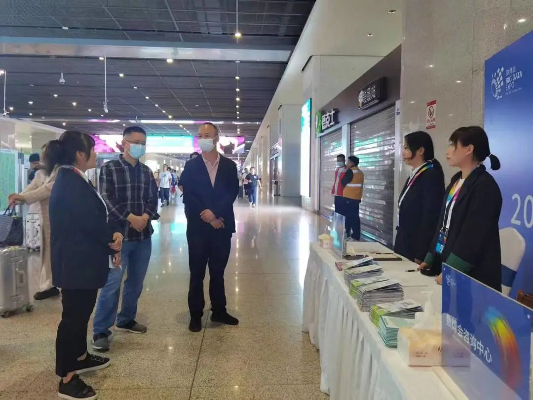 ▲2023中国国际大数据产业博览会开幕前期,贵阳市旅游文化有限公司党委副书记、总经理徐志松,副总经理彭山虎一行到贵阳北站嘉宾接待点检查接待工作准备情况。