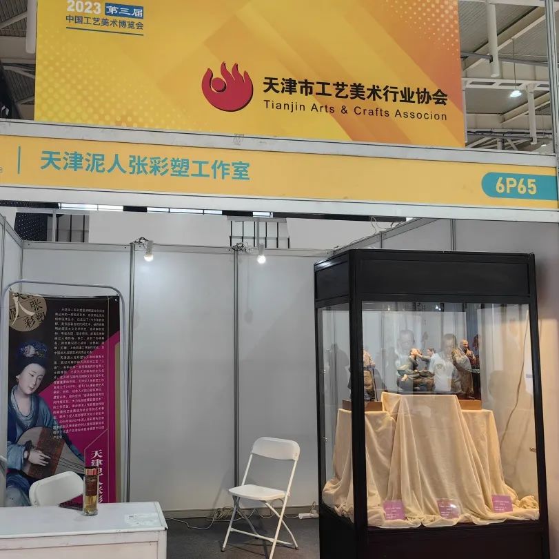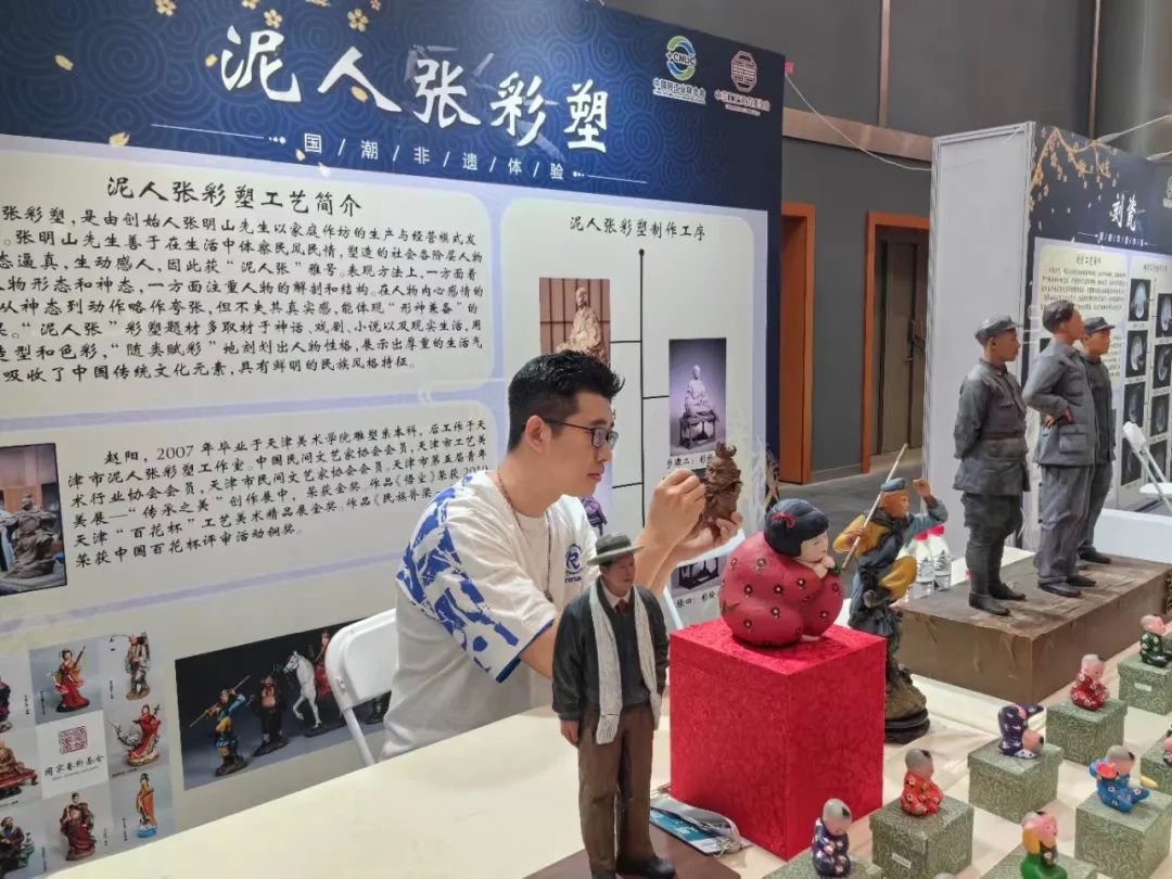 在大师工匠非遗精品展区,天津泥人张彩塑工作室受邀,参加“国潮走进生活”非遗互动体验活动,现场展示彩塑手工技艺。
