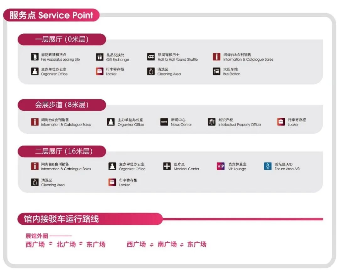 此次HOTELEX上海展面积达到40万平米,尽揽国家会展中心(上海)全馆超大空间。主办方为方便观众在展馆之间参观流动,特别设置了展馆循环接驳车,方便大家在展馆各馆往返。