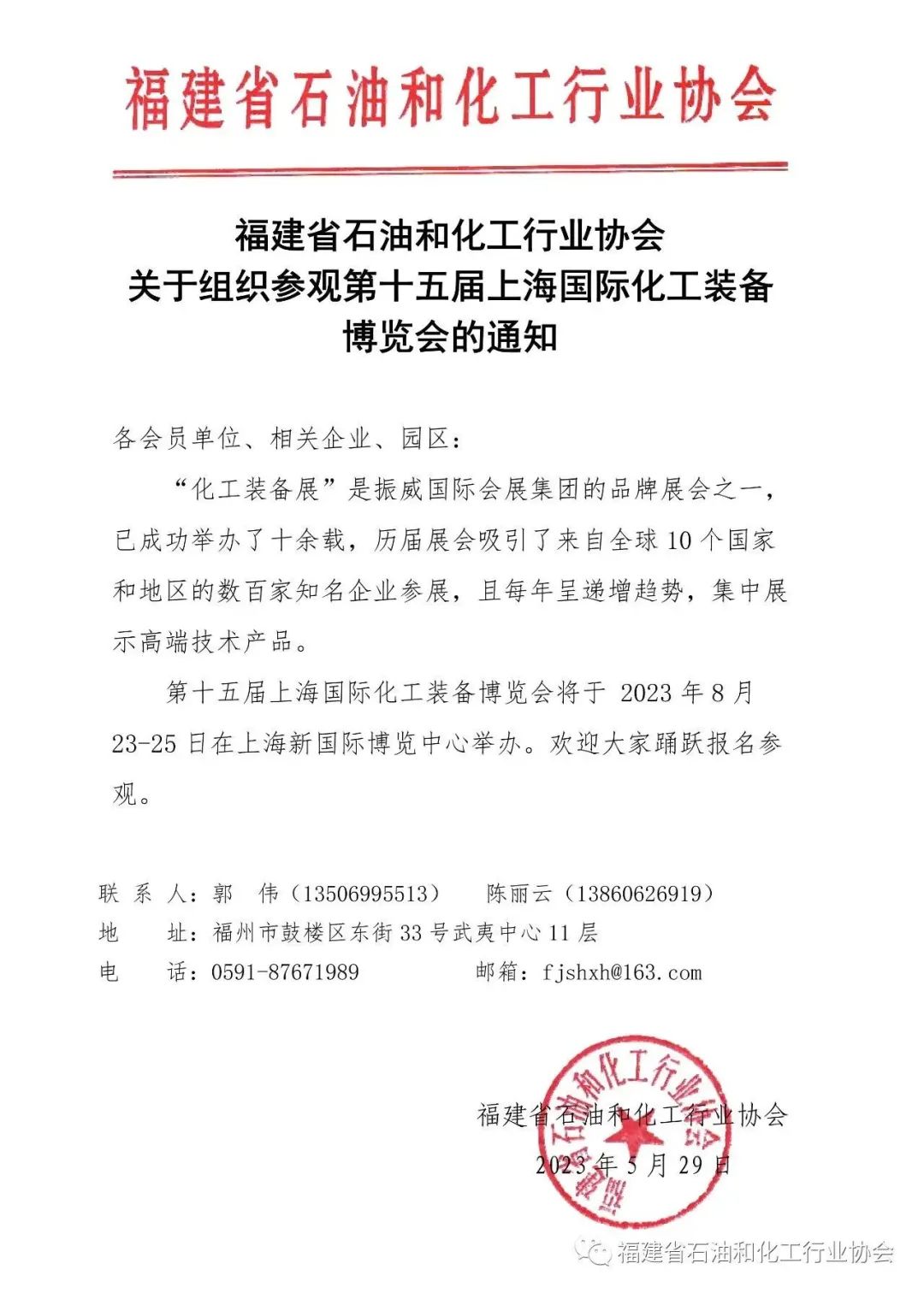 关于组织参观第十五届上海国际化工装备博览会的通知