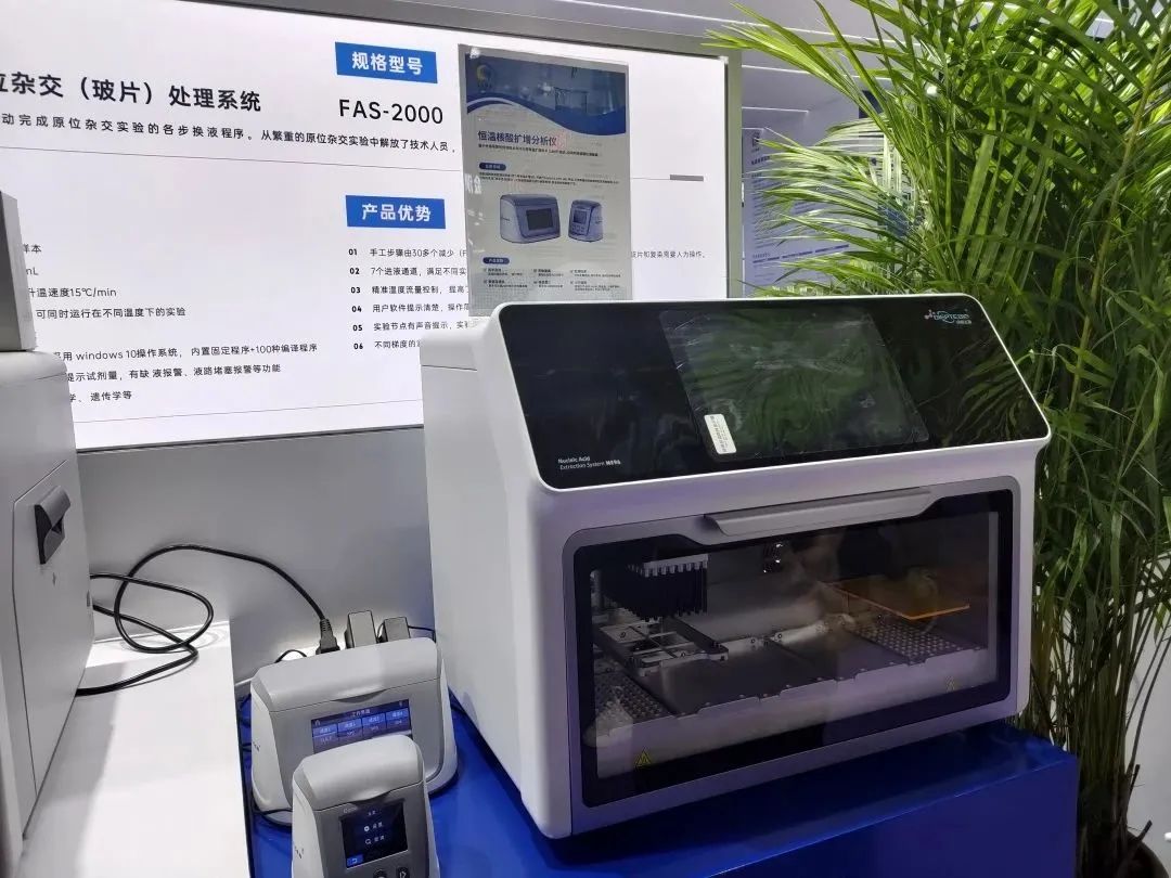 在「A3-0505」东方基因展位,我们展出了全自动流式点阵分析仪、全自动流式荧光发光免疫分析仪、全自动蛋白印迹仪、恒温核酸扩增分析仪、荧光免疫分析仪等多款展品,展品的亮相吸引了众多专家及同道莅临交流,共商合作。