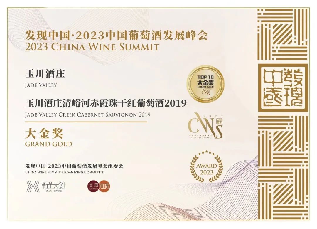 在本次峰会的颁奖典礼上,玉川酒庄清峪河赤霞珠干红葡萄酒2019不负期望,荣获发现中国·2023中国葡萄酒发展峰会大金奖。