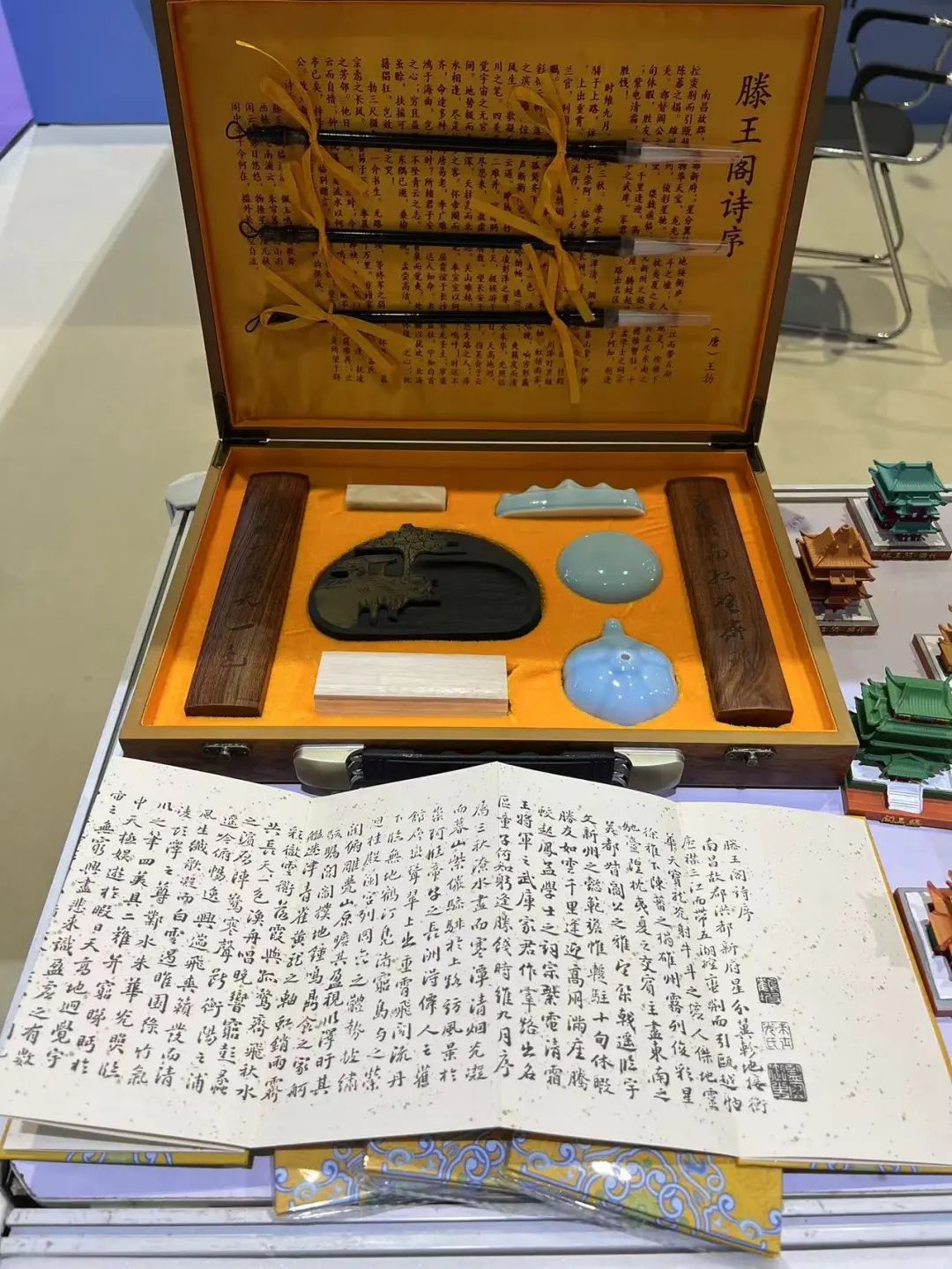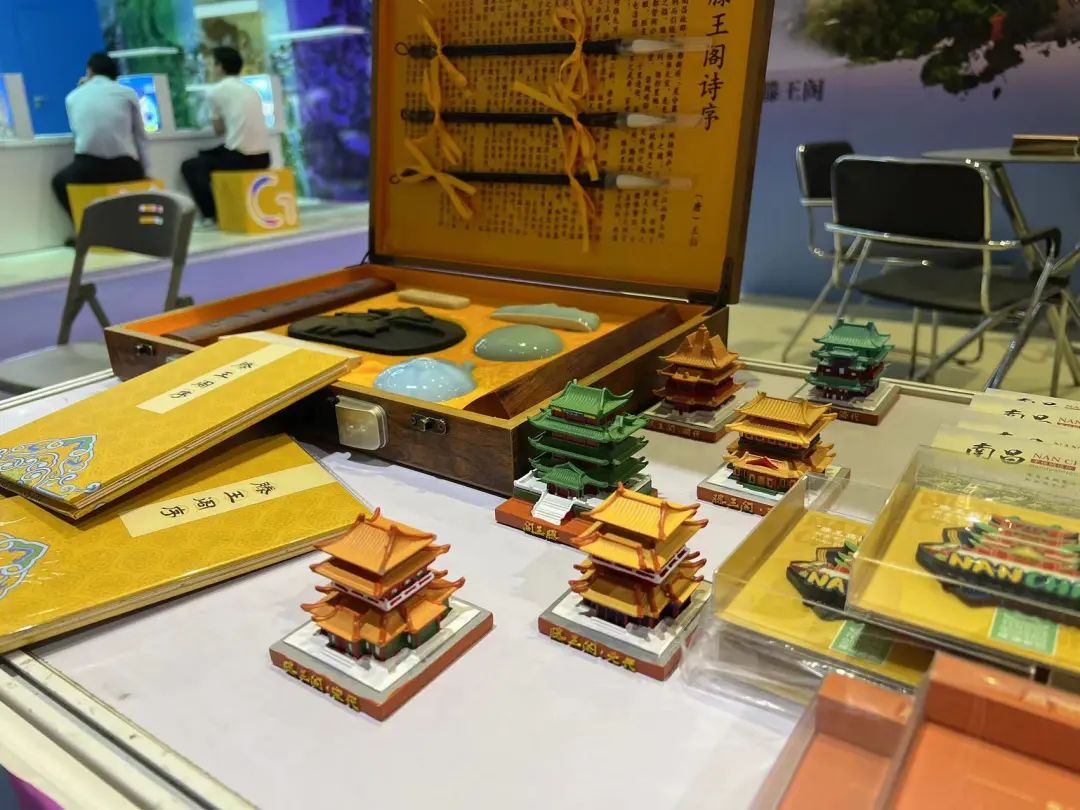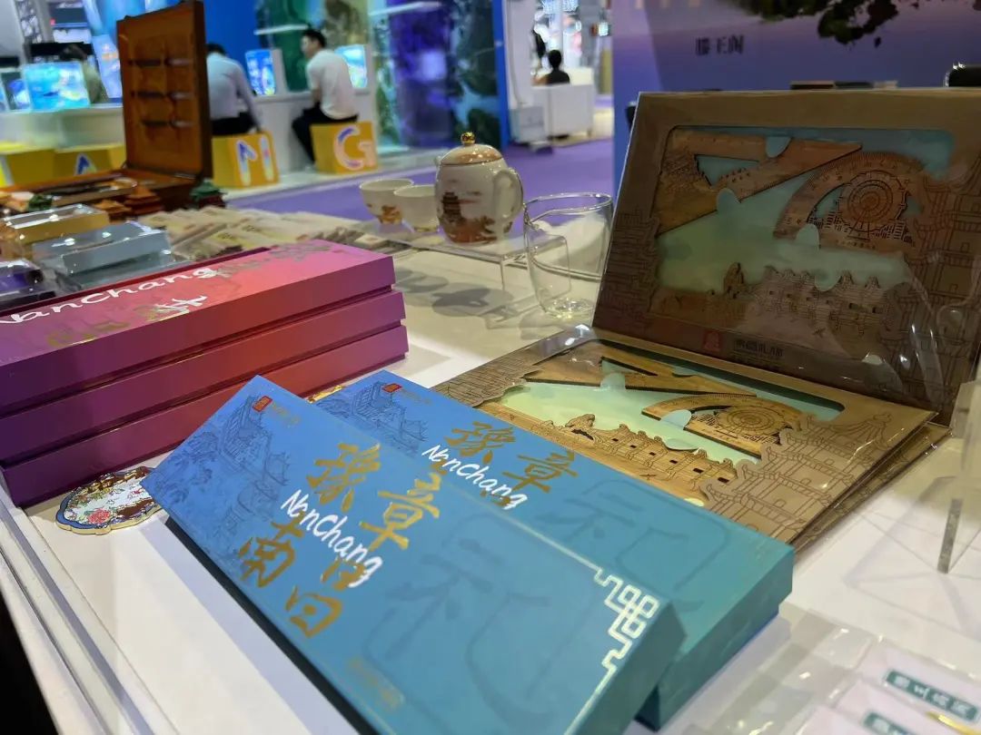 在旅博会主题馆中,来自日本、古巴、突尼斯等海外目的地展商和上海、南京、杭州以及吉林省、江西省、内蒙古自治区等省市的数十家国内文旅目的地展商均来到会展现场推介宣传。“南昌礼物”携2023新品文创亮相本次旅博会,其中飞阁流丹·城市茶礼、文房四宝、南昌城市印象系列冰箱贴礼盒等得到了游客朋友的一致好评。