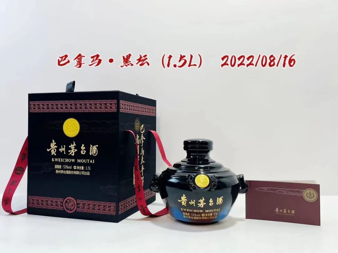 2022年贵州茅台酒·巴拿马太平洋万国博览会金奖纪念,53度,1.5L,原箱拆出,小批量勾兑酒质,这款酒在2015年推出,目的是为了纪念茅台酒荣获巴拿马金奖一百周年,又被业界称为巴拿马黑坛。带鉴定。