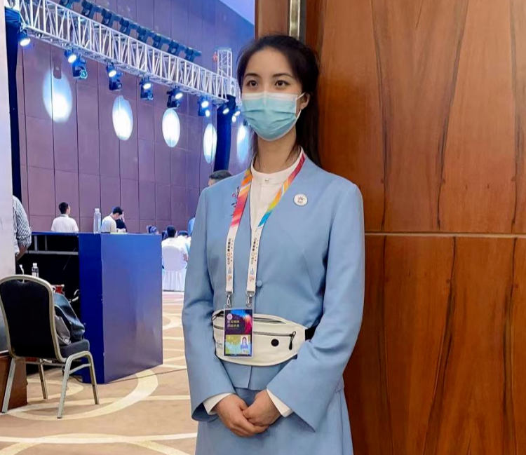 成为一名志愿者一直以来都是我梦寐以求的愿望,我也凭借努力为自己赢得了这个机会。在数博会服务期间,我穿着这件寓意“青出于蓝”的志愿者服装,以“小青爽”的身份做好自己的本职工作。无论是嘉宾的引导、接待、翻译,又或是会务、礼仪、咨询等,我都以最饱满的热情相迎,确保时刻展现我们志愿者的素质专业度、形象魅力度。