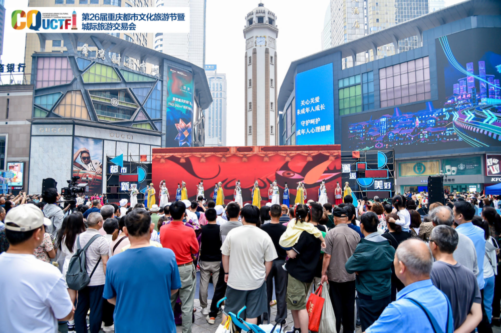 5月26日-28日,第26届重庆都市文化旅游节暨城际旅游交易会在解放碑步行街和观音桥步行街两地同时举办。