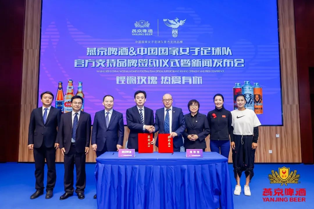 铿锵玫瑰,热爱有你!5月29日,燕京啤酒与中国国家女子足球队签约仪式在北京举行,中国足球协会副主席孙雯、燕京啤酒党委书记、董事长耿超、燕京啤酒党委副书记、副董事长、总经理谢广军、燕京啤酒党委副书记兰善锋、燕京啤酒副总经理兼营销中心总经理申长亮,以及中国福特宝足球产业发展公司总经理赫晓峰、前中国女足运动员浦玮、韩端等出席签约仪式。