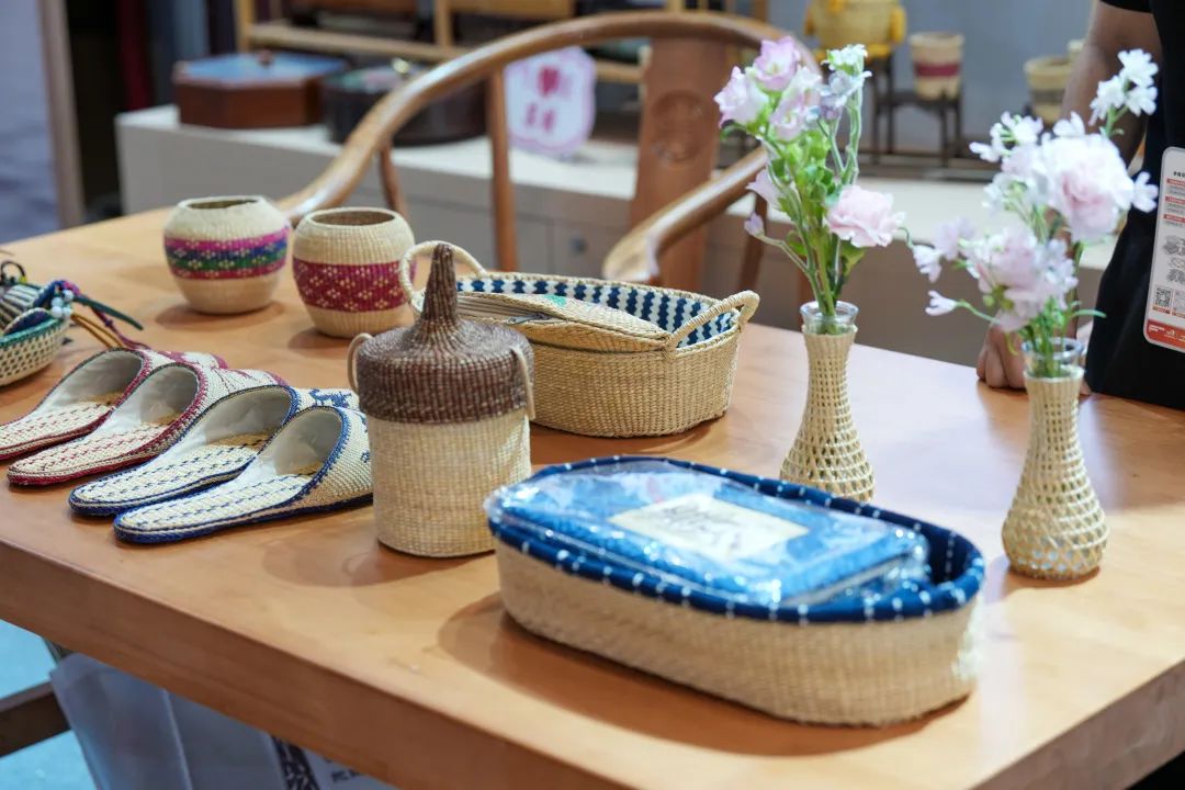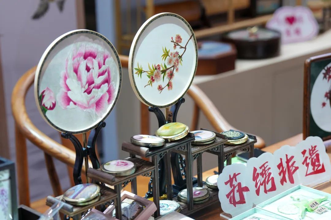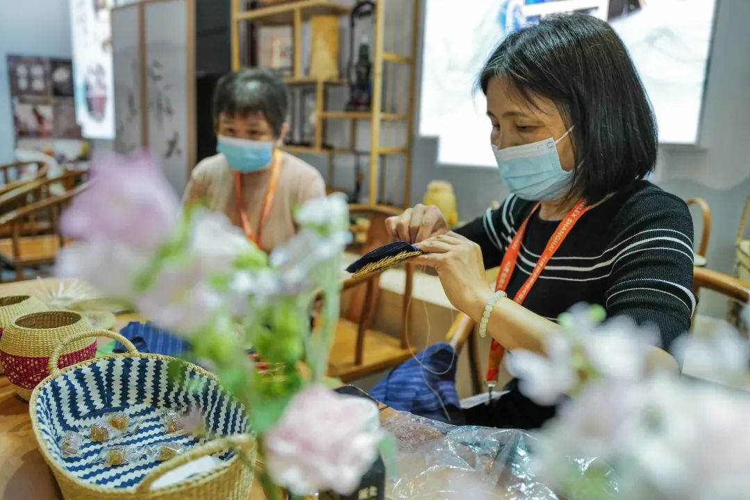 嘉定非遗项目嘉定竹刻、徐行草编、药斑布印染技艺、苏绣、压金丝嵌宝工艺参加了本次展会。