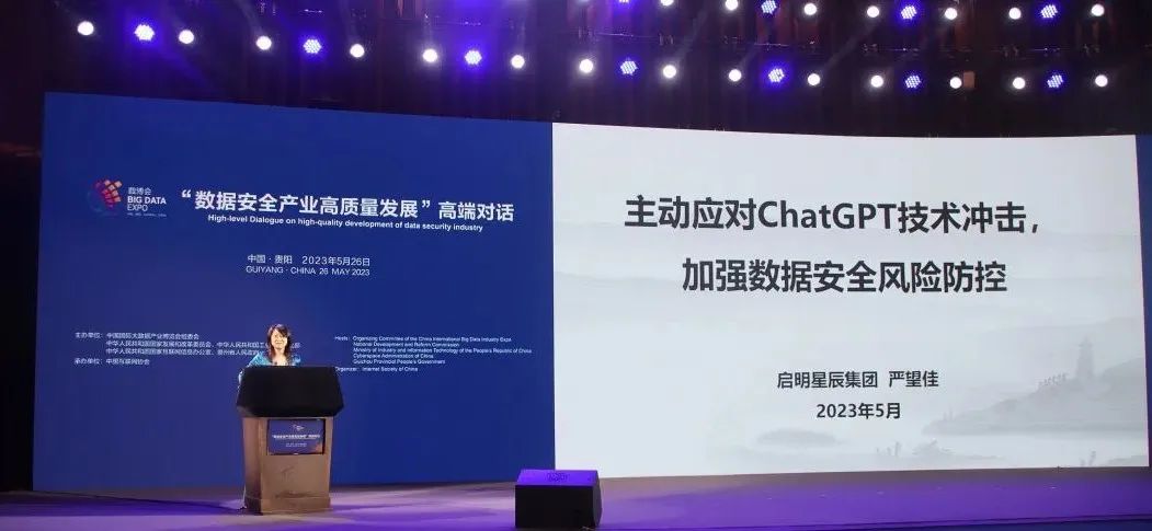 近日,2023中国国际大数据产业博览会在贵阳成功召开。启明星辰集团董事长兼首席执行官严望佳应邀出席大会“数据安全产业高质量发展”高端对话,发表“主动应对ChatGPT技术冲击,加强数据安全风险防控”主题演讲,同与会人士共探数据安全发展之路。