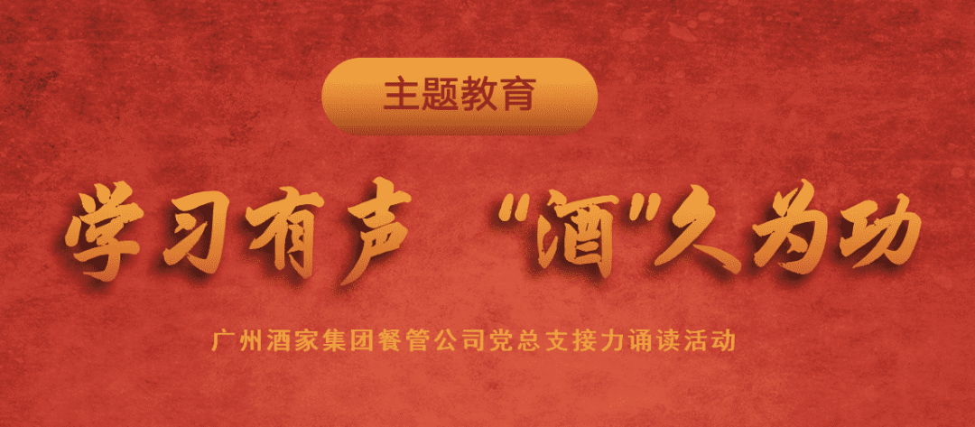学习有声、“酒”久为功第二期,由餐管公司党总支领导班子成员陈纯玲、郭志明、陈秀林3位同志接力为大家领读,让我们一起来共同学习吧!